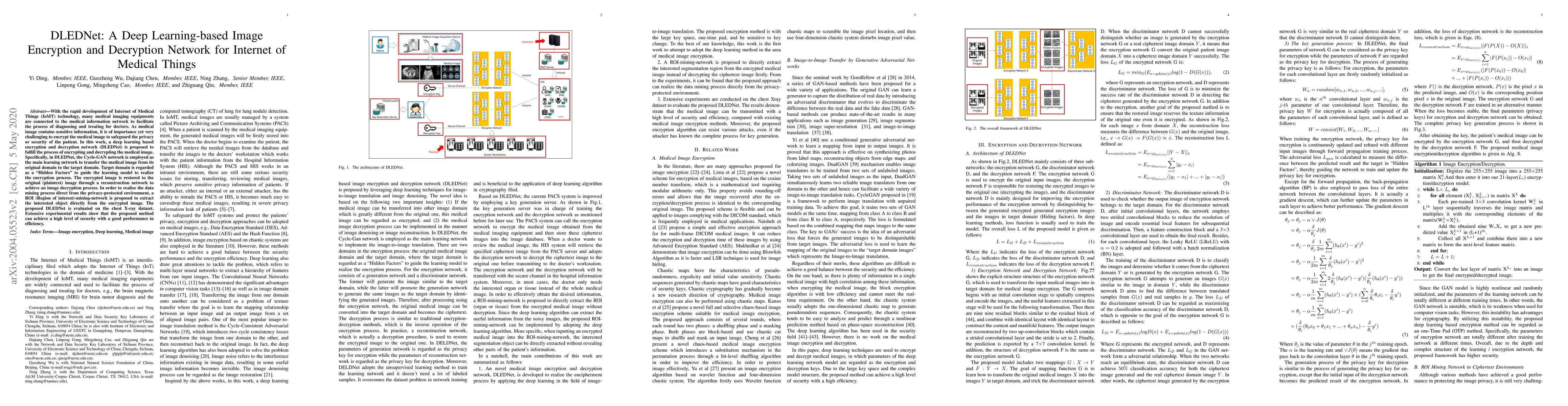 DeepEDN employs a Cycle-GAN for secure encryption and decryption of medical images in the Internet of Medical Things, ensuring high security and efficiency while enabling region of interest extraction from encrypted images. Experimental results on chest X-rays demonstrate its effectiveness.