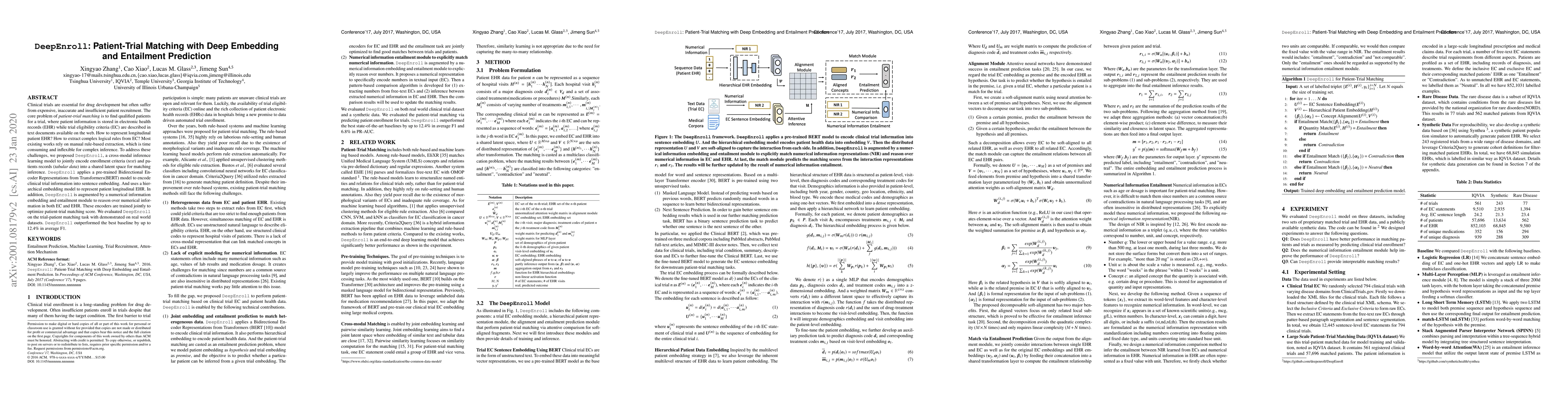DeepEnroll is a novel model for patient-trial matching that uses deep embedding and entailment to encode clinical trial criteria and patient records into a shared latent space, significantly improving matching accuracy over traditional methods. It outperformed baselines by up to 12.4% in F1 score on real-world datasets.