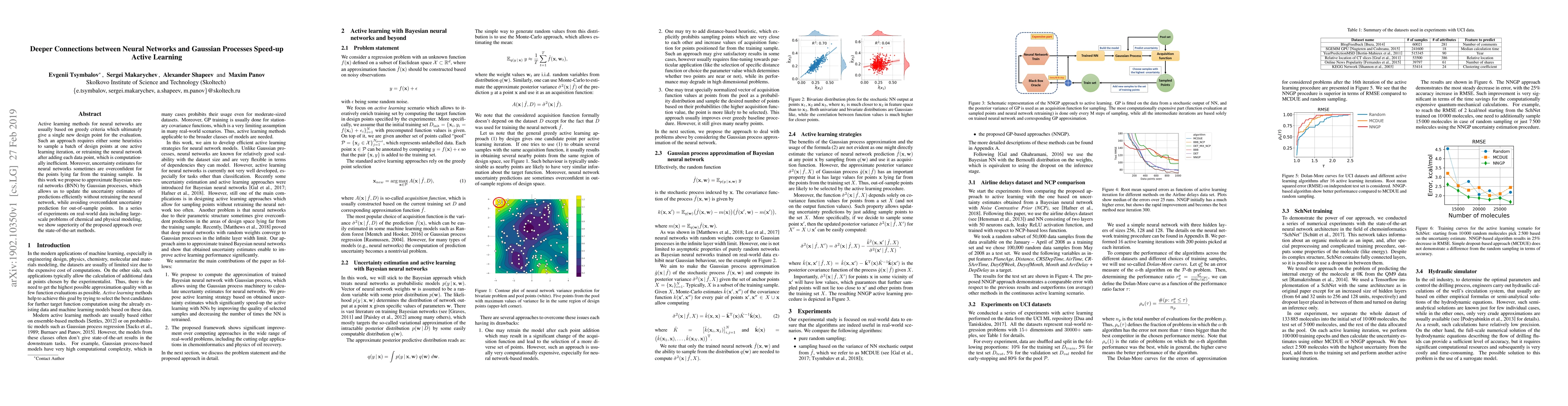 Active learning methods for neural networks are usually based on greedy criteria which ultimately give a single new design point for the evaluation. Such an approach requires either some heuristics to sample a batch of design points at one active learning iteration, or retraining the neural network after adding each data point, which is computationally inefficient. Moreover, uncertainty estimates for neural networks sometimes are overconfident for the points lying far from the training sample. In this work we propose to approximate Bayesian neural networks (BNN) by Gaussian processes, which allows us to update the uncertainty estimates of predictions efficiently without retraining the neural network, while avoiding overconfident uncertainty prediction for out-of-sample points. In a series of experiments on real-world data including large-scale problems of chemical and physical modeling, we show superiority of the proposed approach over the state-of-the-art methods.