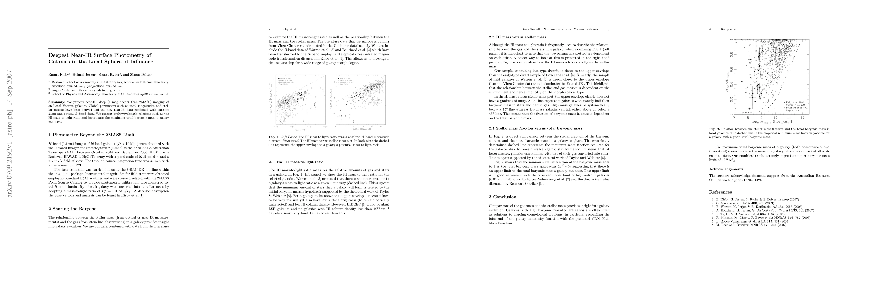 We present near-IR, deep (4 mag deeper than 2MASS) imaging of 56 Local Volume galaxies. Global parameters such as total magnitudes and stellar masses have been derived and the new near-IR data combined with existing 21cm and optical B-band data. We present multiwavelength relations such as the HI mass-to-light ratio and investigate the maximum total baryonic mass a galaxy can have.
