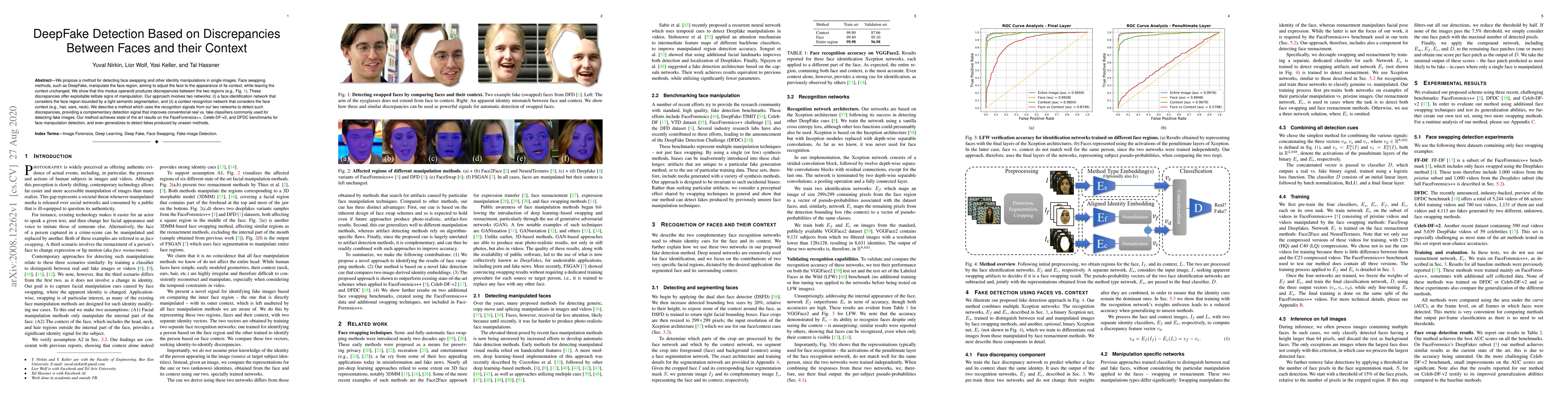 A new method detects face swapping manipulation in images by analyzing discrepancies between the manipulated face and its context, achieving state-of-the-art results on major benchmarks.
