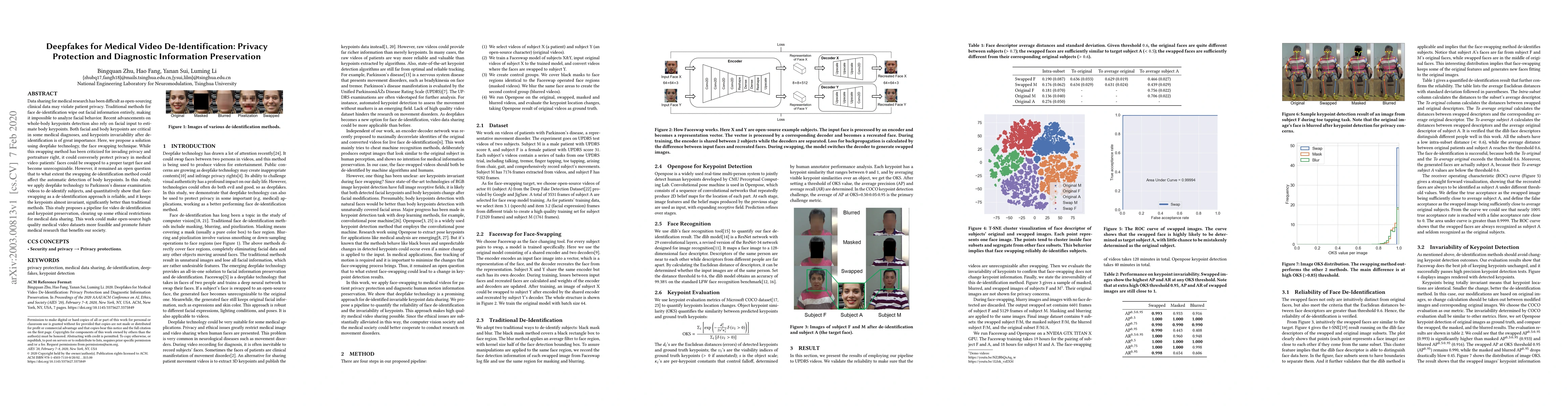 This paper proposes a deepfake-based face-swapping technique for medical video de-identification, ensuring patient privacy while preserving diagnostic facial and body keypoints. The study demonstrates that this method maintains keypoint invariability, significantly outperforming traditional de-identification approaches, thereby facilitating ethical medical data sharing.