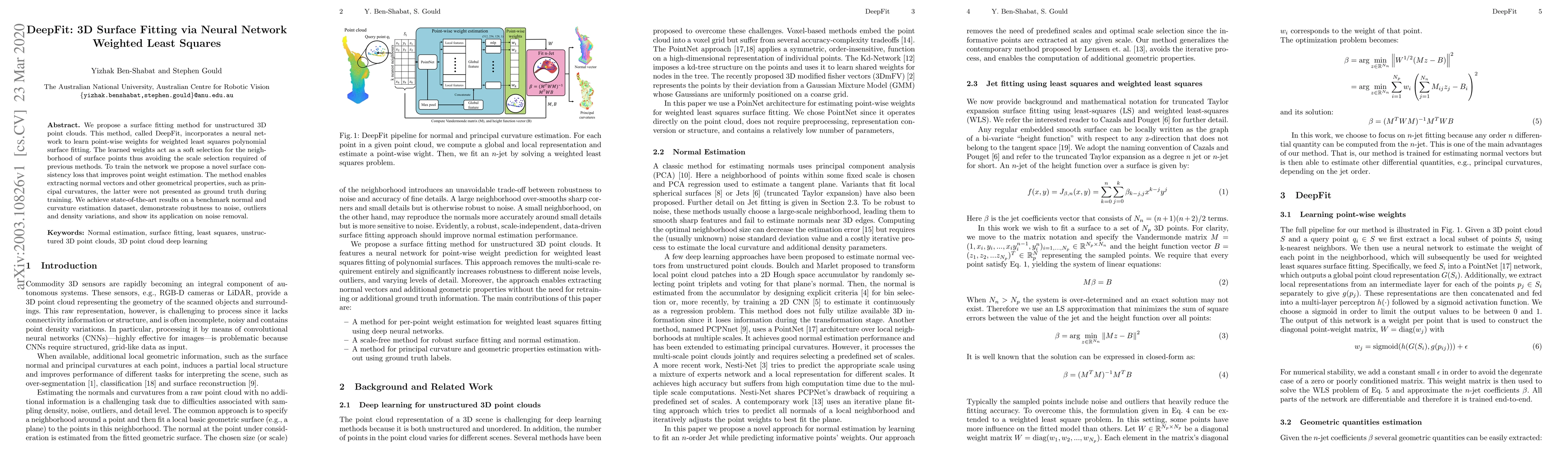 DeepFit is a novel surface fitting method that uses neural networks to learn point-wise weights for weighted least squares polynomial surface fitting, enabling robust normal vector and curvature estimation with state-of-the-art results.