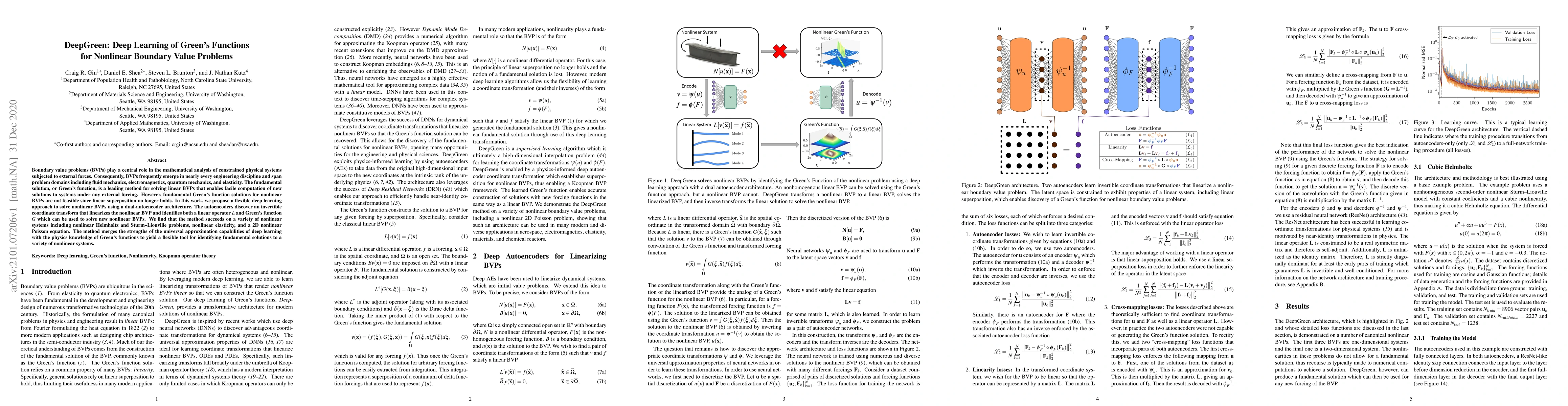 This paper introduces DeepGreen, a deep learning method using dual-autoencoders to solve nonlinear boundary value problems (BVPs) by linearizing them and identifying Green's functions. The approach successfully solves various nonlinear systems, merging deep learning's approximation power with Green's function principles.