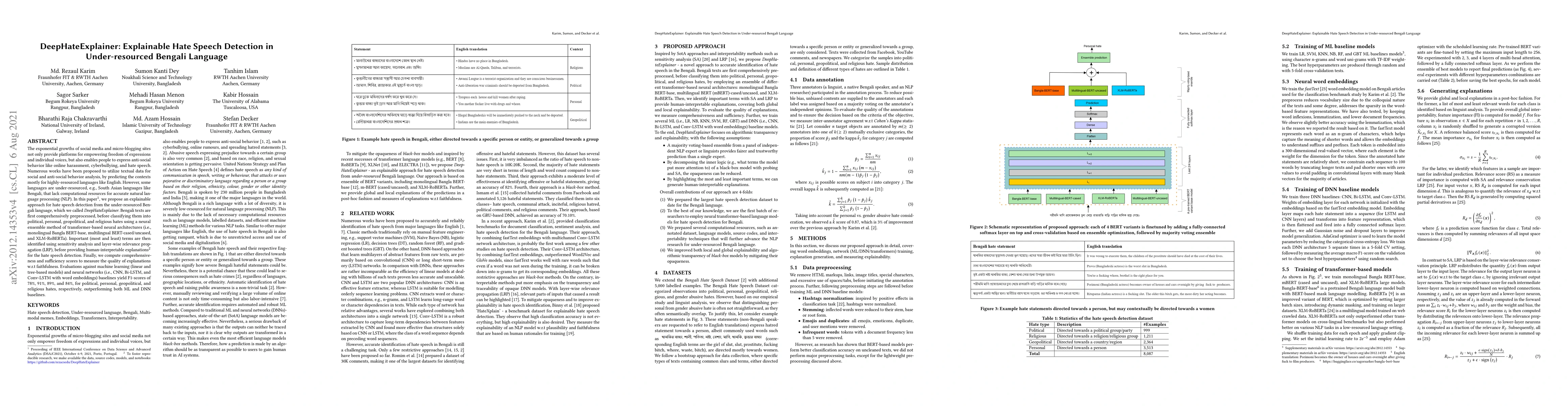 DeepHateExplainer proposes an explainable method for detecting hate speech in under-resourced Bengali language using transformer-based neural architectures. The approach identifies important terms for explanations and outperforms machine learning and neural network baselines in detecting different types of hate speech.
