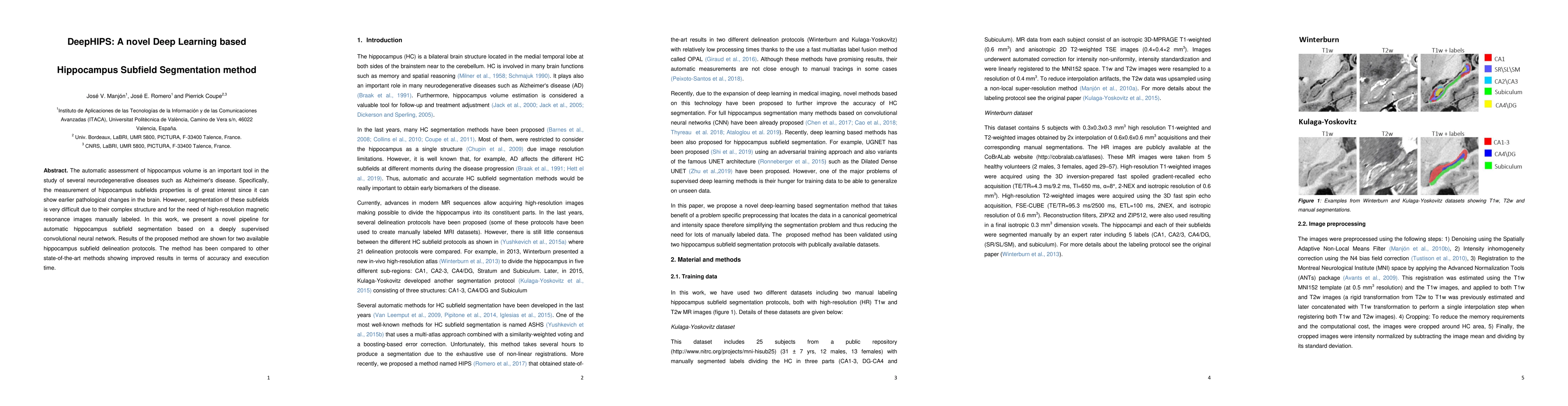 DeepHIPS introduces a novel deep learning-based method for automatic segmentation of hippocampus subfields using a deeply supervised convolutional neural network, demonstrating improved accuracy and faster execution compared to existing techniques, aiding in the early detection of neurodegenerative diseases like Alzheimer's.