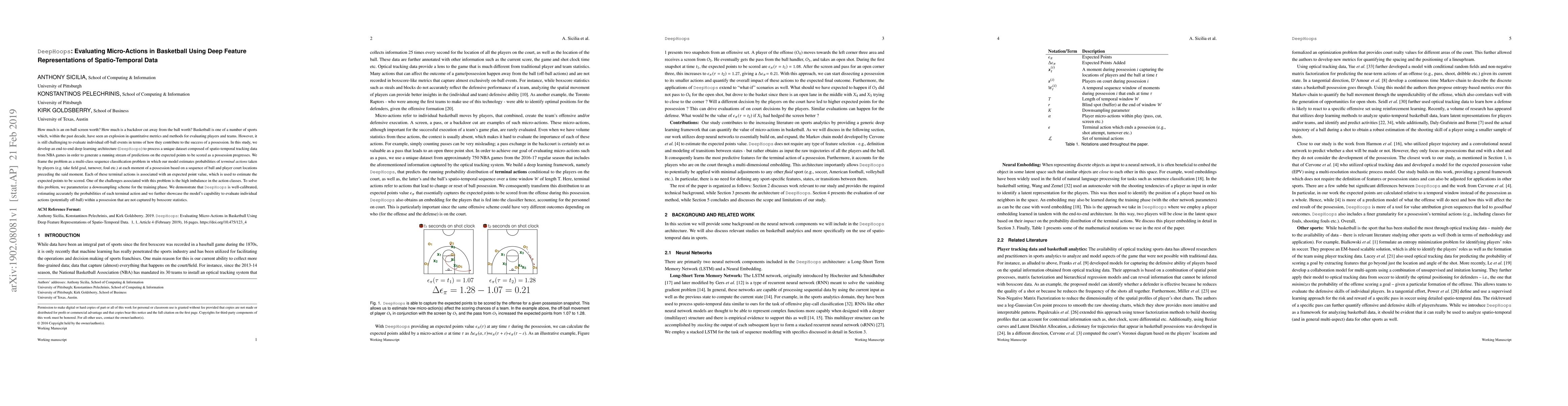 A new deep learning model called DeepHoops evaluates basketball players' actions in real-time, predicting expected points scored based on individual player movements. The model accurately estimates terminal action probabilities and can analyze off-ball events not captured by traditional boxscore statistics.
