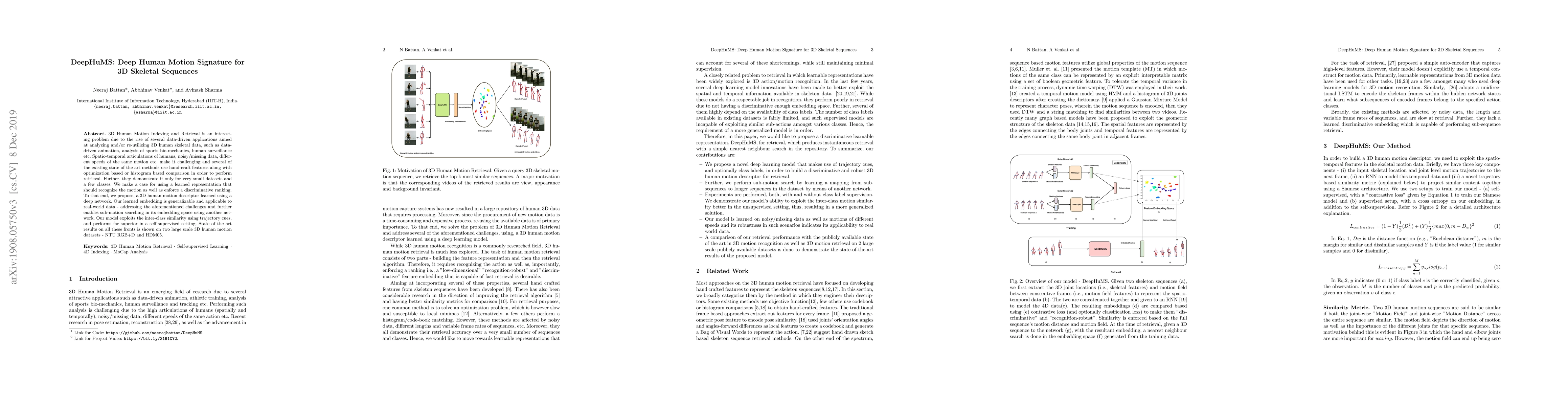 3D Human Motion Indexing and Retrieval is an interesting problem due to the rise of several data-driven applications aimed at analyzing and/or re-utilizing 3D human skeletal data, such as data-driven animation, analysis of sports bio-mechanics, human surveillance etc. Spatio-temporal articulations of humans, noisy/missing data, different speeds of the same motion etc. make it challenging and several of the existing state of the art methods use hand-craft features along with optimization based or histogram based comparison in order to perform retrieval. Further, they demonstrate it only for very small datasets and few classes. We make a case for using a learned representation that should recognize the motion as well as enforce a discriminative ranking. To that end, we propose, a 3D human motion descriptor learned using a deep network. Our learned embedding is generalizable and applicable to real-world data - addressing the aforementioned challenges and further enables sub-motion searching in its embedding space using another network. Our model exploits the inter-class similarity using trajectory cues, and performs far superior in a self-supervised setting. State of the art results on all these fronts is shown on two large scale 3D human motion datasets - NTU RGB+D and HDM05.