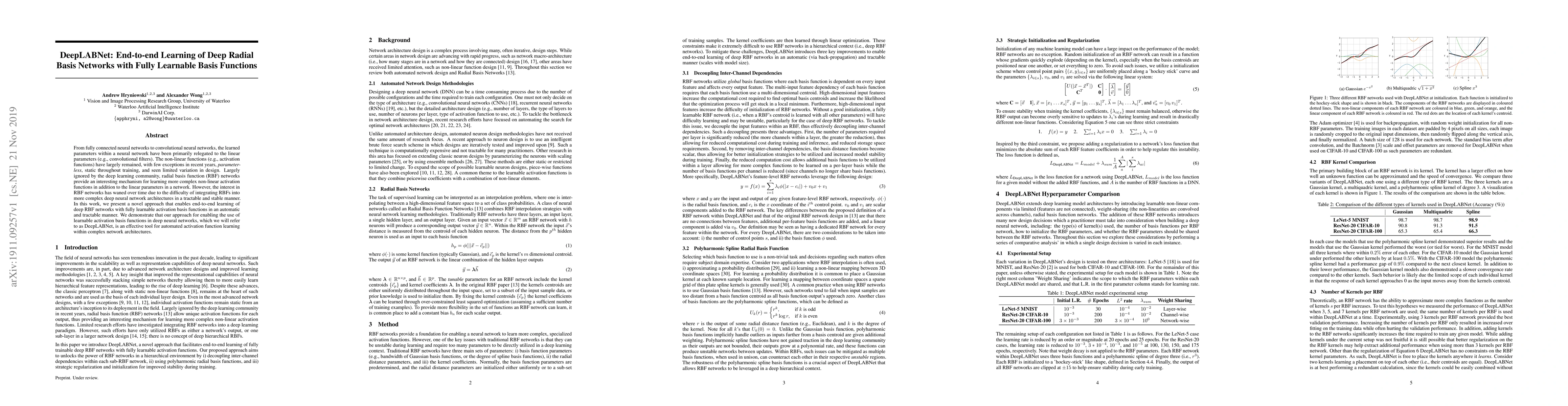 DeepLABNet introduces a novel method for end-to-end learning of deep radial basis function networks with fully learnable basis functions, enabling the integration of complex non-linear activation functions into deep neural networks in a stable and automatic manner. This approach demonstrates effectiveness in automated activation function learning within intricate network architectures.