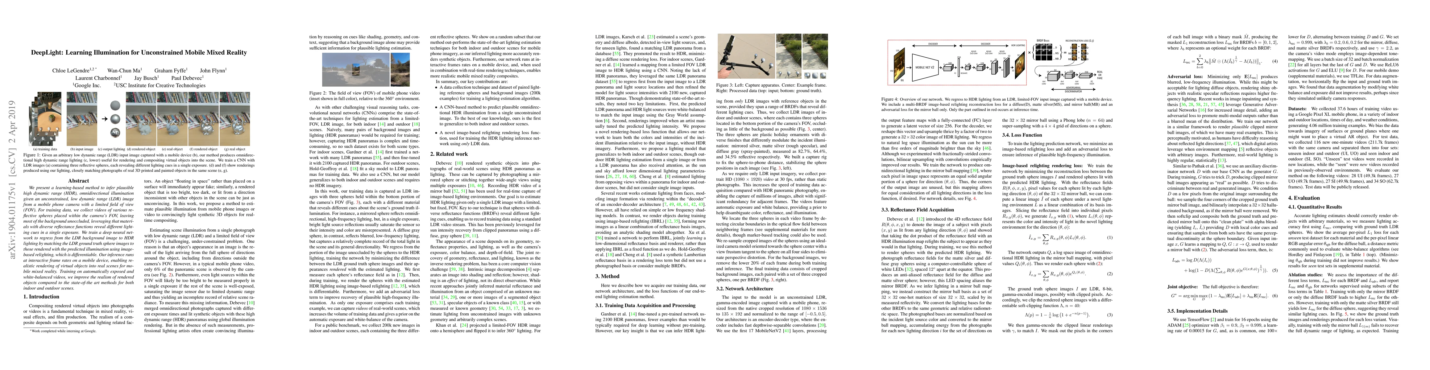 The research introduces DeepLight, a deep learning method to estimate high dynamic range (HDR) lighting from low dynamic range (LDR) images captured by mobile phone cameras. By training on videos of spheres reflecting diverse lighting cues, DeepLight can generate realistic HDR illumination for virtual object rendering in mobile mixed reality, running at interactive frame rates on mobile devices. This approach enhances the realism of rendered virtual objects in both indoor and outdoor scenes compared to existing methods.