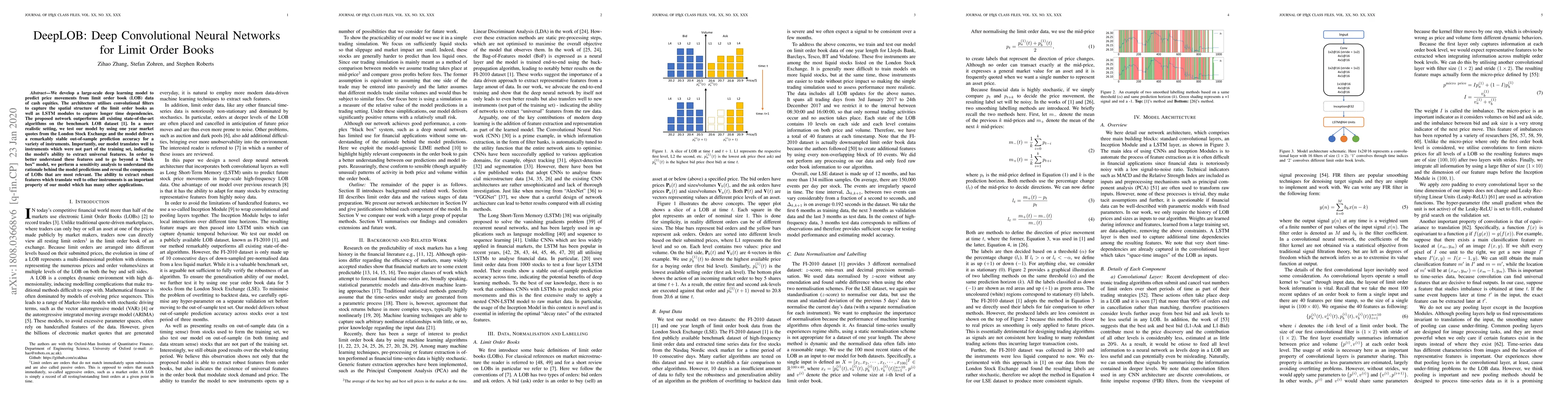 This paper introduces DeepLOB, a deep learning model using convolutional and LSTM networks to predict price movements from limit order book data. The model demonstrates superior performance on benchmark datasets and maintains stable accuracy across various instruments, indicating its ability to generalize and extract universal features.