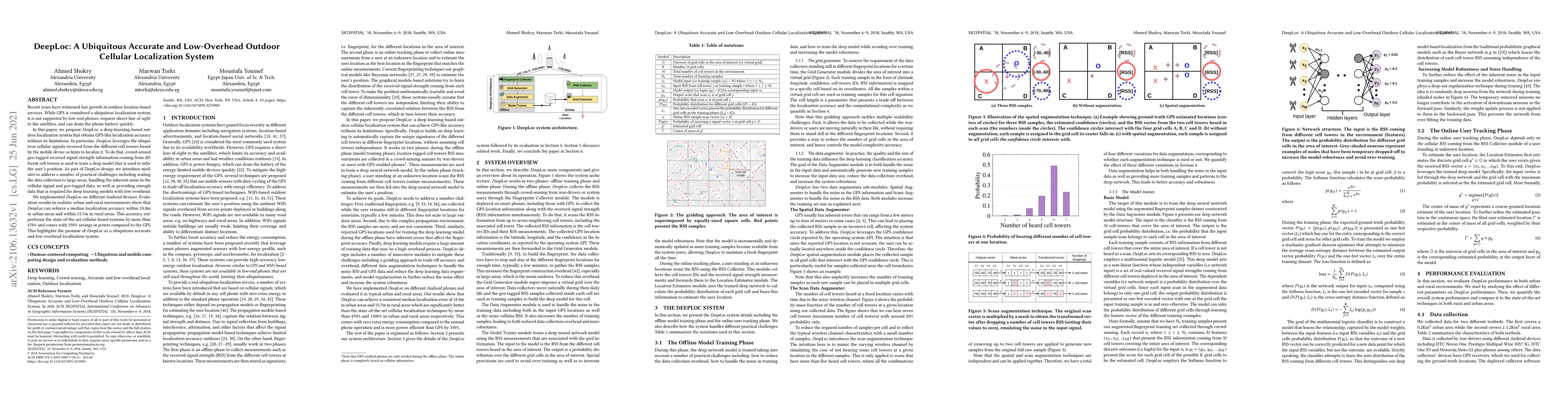 DeepLoc is a deep learning-based outdoor localization system that uses cellular signals to achieve GPS-like accuracy without GPS's limitations. It outperforms existing cellular-based systems and saves power, demonstrating a promising alternative for ubiquitous, accurate, and low-overhead outdoor localization.