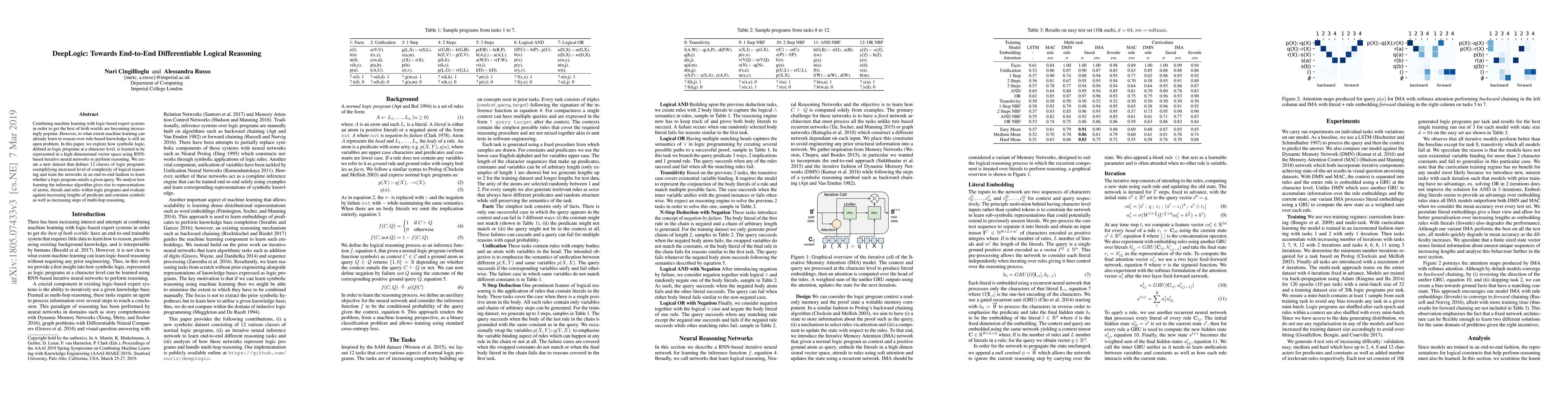 Combining machine learning with logic-based expert systems in order to get the best of both worlds are becoming increasingly popular. However, to what extent machine learning can already learn to reason over rule-based knowledge is still an open problem. In this paper, we explore how symbolic logic, defined as logic programs at a character level, is learned to be represented in a high-dimensional vector space using RNN-based iterative neural networks to perform reasoning. We create a new dataset that defines 12 classes of logic programs exemplifying increased level of complexity of logical reasoning and train the networks in an end-to-end fashion to learn whether a logic program entails a given query. We analyse how learning the inference algorithm gives rise to representations of atoms, literals and rules within logic programs and evaluate against increasing lengths of predicate and constant symbols as well as increasing steps of multi-hop reasoning.
