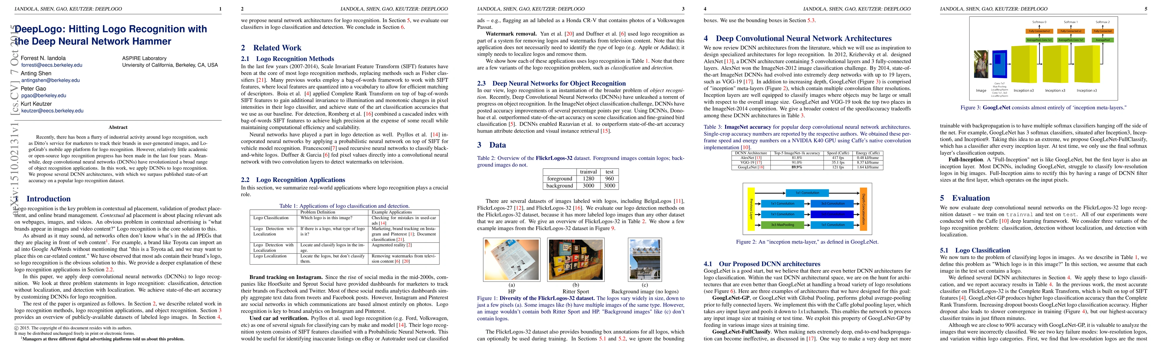 DeepLogo leverages deep convolutional neural networks (DCNNs) to achieve superior logo recognition accuracy, surpassing existing methods on a widely-used dataset, addressing a gap in recent academic progress in this field.