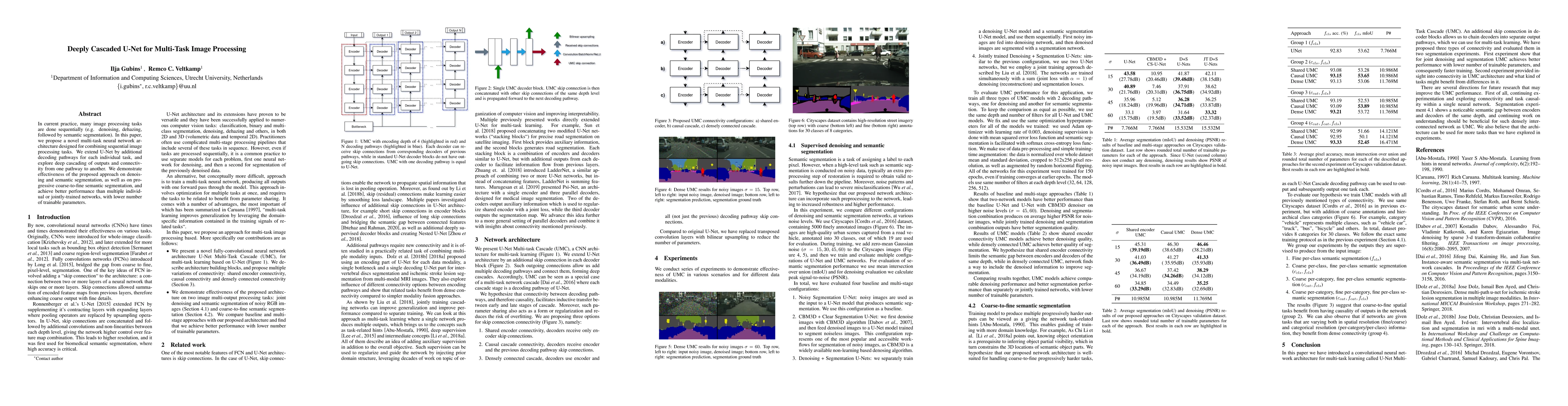 The paper presents a new neural network architecture, Deeply Cascaded U-Net, which efficiently combines multiple image processing tasks like denoising, dehazing, and semantic segmentation. This approach outperforms separate or jointly-trained networks with fewer trainable parameters, demonstrating improved performance in tasks like coarse-to-fine semantic segmentation.
