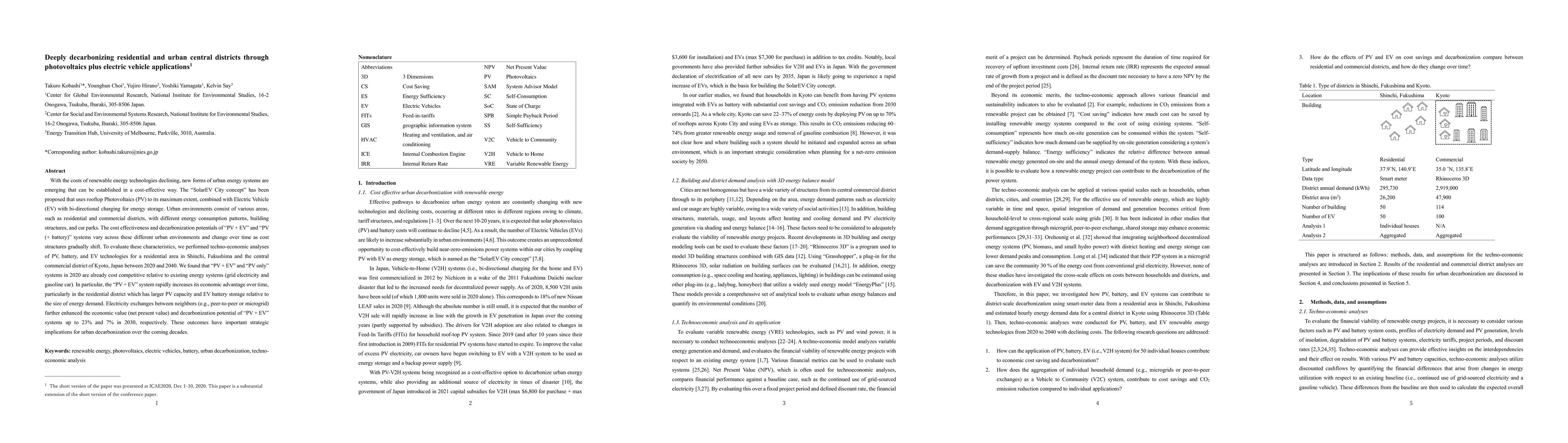 The paper explores the cost-effectiveness and decarbonization potential of integrating rooftop Photovoltaics (PV) with Electric Vehicle (EV) systems in urban districts. The PV + EV system shows significant economic advantages and decarbonization benefits, especially in residential areas, with further enhancements from electricity exchanges between neighbors.