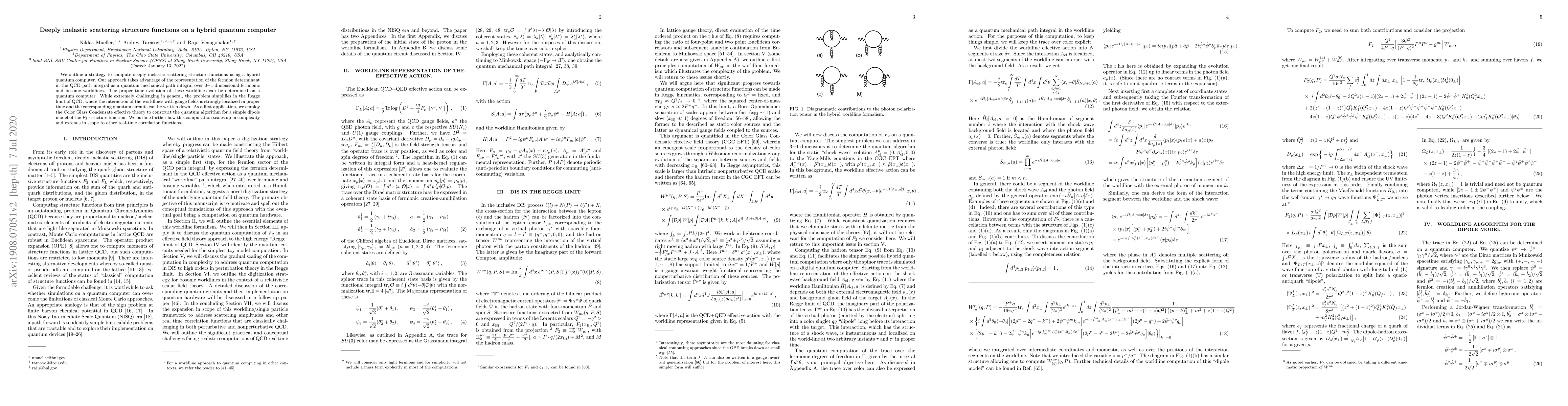 We outline a strategy to compute deeply inelastic scattering structure functions using a hybrid quantum computer. Our approach takes advantage of the representation of the fermion determinant in the QCD path integral as a quantum mechanical path integral over 0+1-dimensional fermionic and bosonic worldlines. The proper time evolution of these worldlines can be determined on a quantum computer. While extremely challenging in general, the problem simplifies in the Regge limit of QCD, where the interaction of the worldlines with gauge fields is strongly localized in proper time and the corresponding quantum circuits can be written down. As a first application, we employ the Color Glass Condensate effective theory to construct the quantum algorithm for a simple dipole model of the $F_2$ structure function. We outline further how this computation scales up in complexity and extends in scope to other real-time correlation functions.