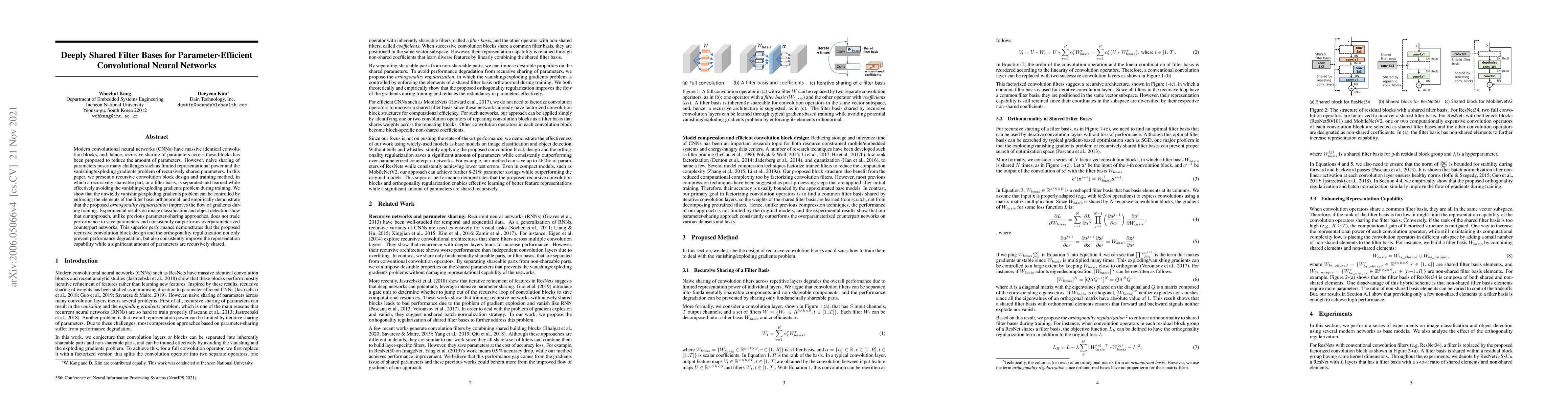 This paper proposes a method to recursively share parameters in convolutional neural networks by separating and learning a shareable filter basis, which is enforced to be orthonormal to avoid gradient issues. The approach consistently outperforms traditional networks while sharing parameters, demonstrating improved representation capability without performance trade-offs.
