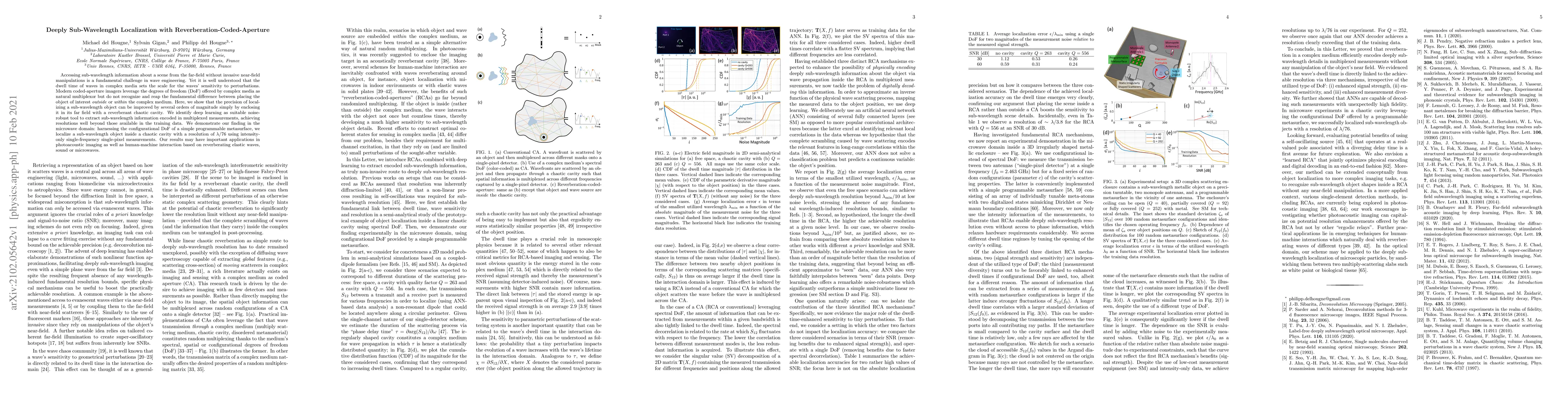 Accessing sub-wavelength information about a scene from the far-field without invasive near-field manipulations is a fundamental challenge in wave engineering. Yet it is well understood that the dwell time of waves in complex media sets the scale for the waves' sensitivity to perturbations. Modern coded-aperture imagers leverage the degrees of freedom (DoF) offered by complex media as natural multiplexor but do not recognize and reap the fundamental difference between placing the object of interest outside or within the complex medium. Here, we show that the precision of localizing a sub-wavelength object can be improved by several orders of magnitude simply by enclosing it in its far field with a reverberant chaotic cavity. We identify deep learning as suitable noise-robust tool to extract sub-wavelength information encoded in multiplexed measurements, achieving resolutions well beyond those available in the training data. We demonstrate our finding in the microwave domain: harnessing the configurational DoF of a simple programmable metasurface, we localize a sub-wavelength object inside a chaotic cavity with a resolution of $\lambda/76$ using intensity-only single-frequency single-pixel measurements. Our results may have important applications in photoacoustic imaging as well as human-machine interaction based on reverberating elastic waves, sound or microwaves.