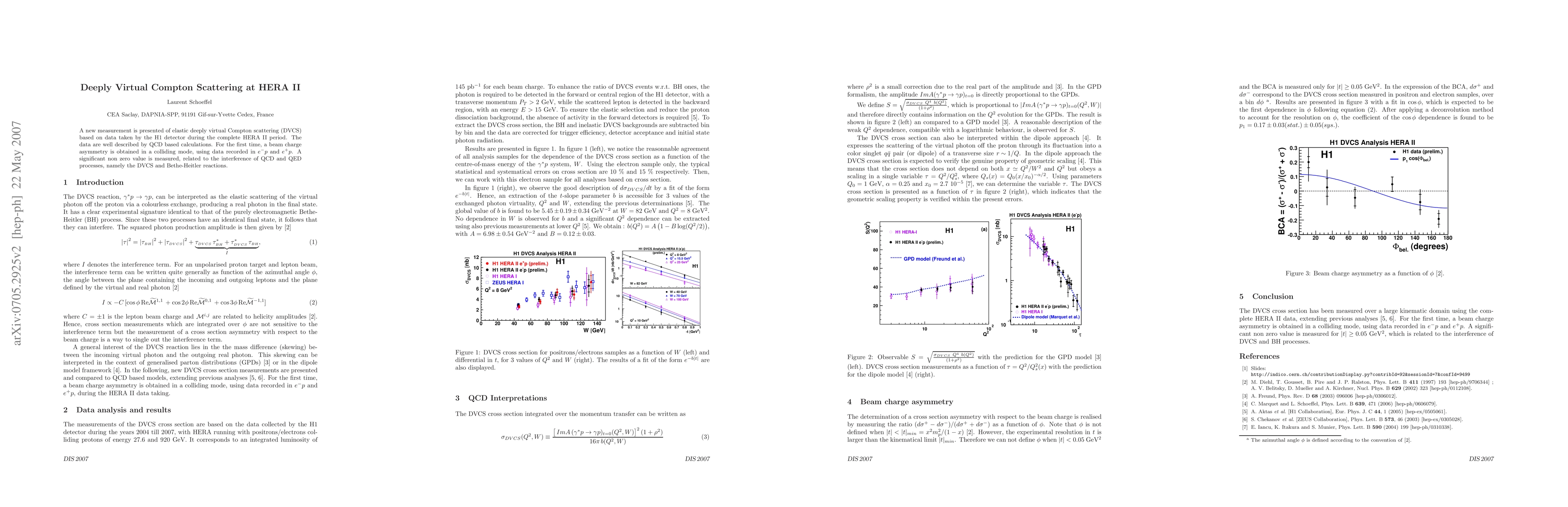 This paper reports a new measurement of elastic deeply virtual Compton scattering (DVCS) using data from the H1 detector during HERA II, showing good agreement with QCD calculations. For the first time, a significant non-zero beam charge asymmetry is observed in colliding mode, revealing interference from both QCD and QED processes.