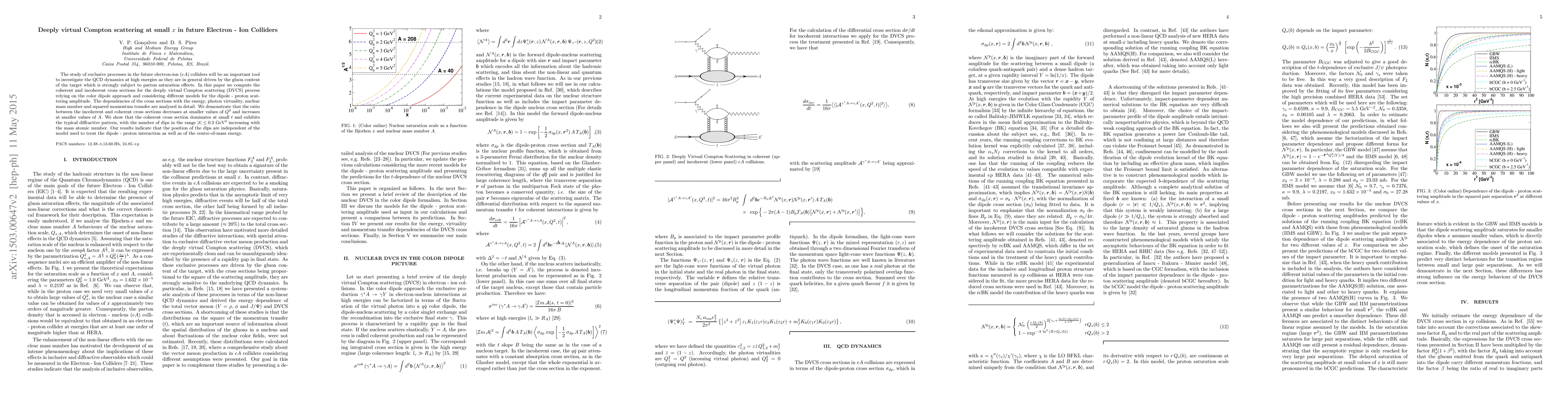 The study of exclusive processes in the future electron-ion ($eA$) colliders will be an important tool to investigate the QCD dynamics at high energies as they are in general driven by the gluon content of the target which is strongly subject to parton saturation effects. In this paper we compute the coherent and incoherent cross sections for the deeply virtual Compton scattering (DVCS) process relying on the color dipole approach and considering different models for the dipole - proton scattering amplitude. The dependencies of the cross sections with the energy, photon virtuality, nuclear mass number and squared momentum transfer are analysed in detail. We demonstrate that the ratio between the incoherent and coherent cross sections decreases at smaller values of $Q^2$ and increases at smaller values of $A$. We show that the coherent cross section dominates at small $t$ and exhibits the typical diffractive pattern, with the number of dips in the range $|t| \le 0.3$ GeV$^2$ increasing with the mass atomic number. Our results indicate that the position of the dips are independent of the model used to treat the dipole - proton interaction as well as of the center-of-mass energy.