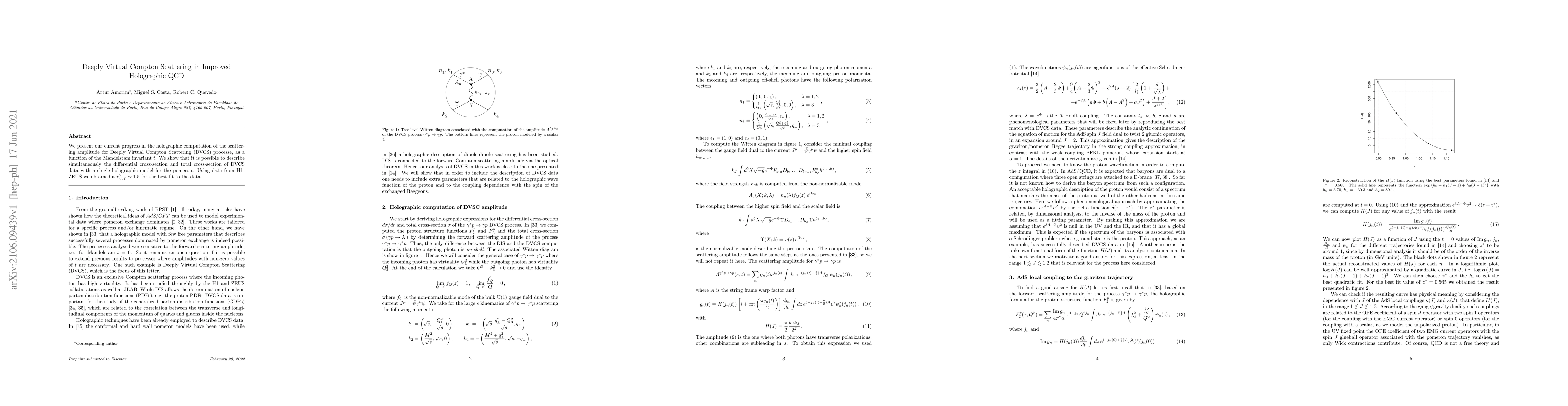 This paper reports advancements in holographic QCD for computing the scattering amplitude of Deeply Virtual Compton Scattering (DVCS), achieving a good fit ($\chi^2_{dof} \sim 1.5$) to experimental data from H1-ZEUS, and demonstrating the ability to model both differential and total cross-sections with a single pomeron model.