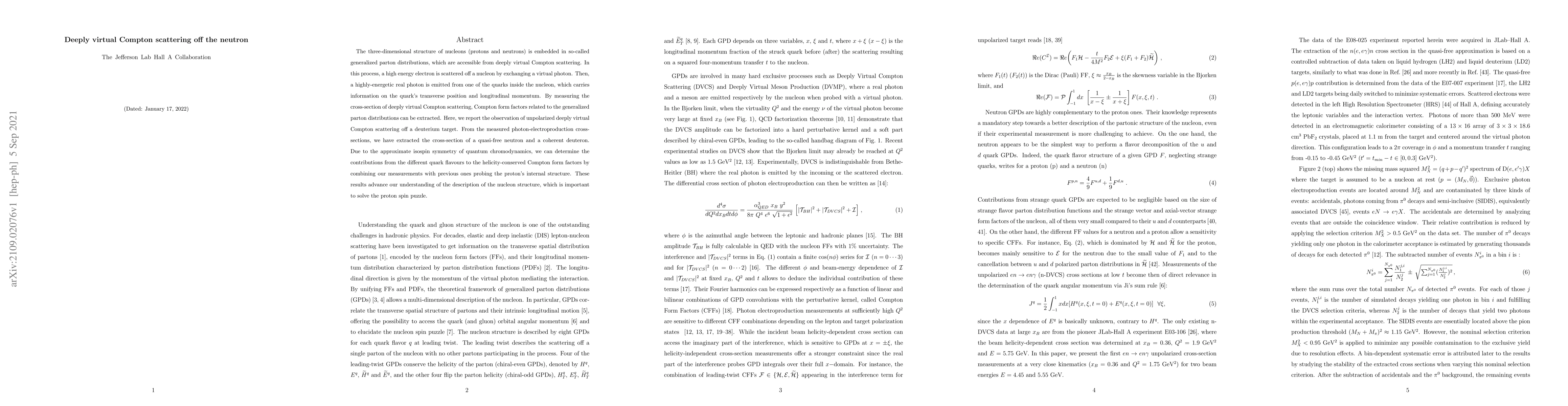 This paper reports on the observation of unpolarized deeply virtual Compton scattering off a neutron, extracted from deuterium targets, to advance the understanding of the nucleon's internal structure. The results provide insights into the contributions from different quark flavors to the helicity-conserved Compton form factors, aiding in solving the proton spin puzzle.