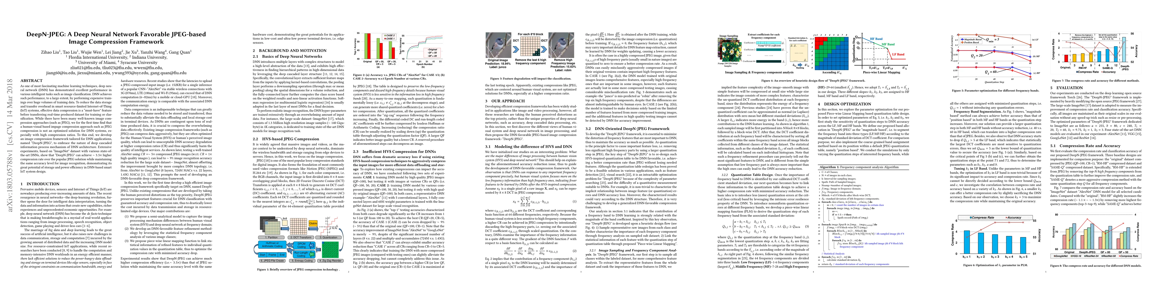 DeepN-JPEG is a specialized image compression framework designed for deep neural network (DNN) applications, achieving significantly higher compression rates compared to traditional JPEG while maintaining image recognition accuracy. This approach optimizes data storage and transfer efficiency for resource-limited IoT systems.