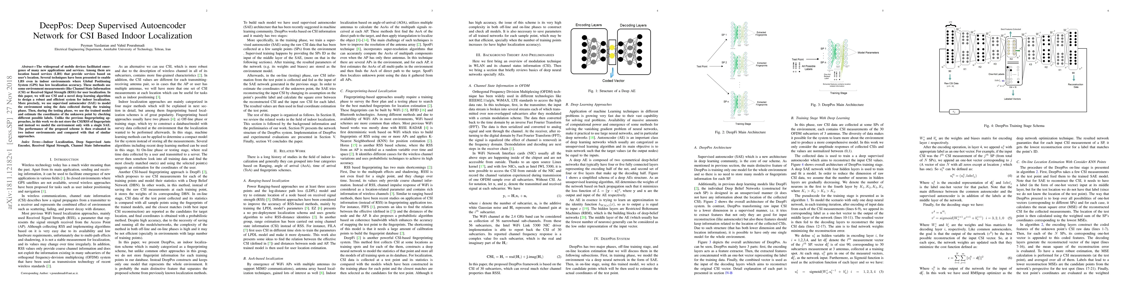 This paper proposes a deep supervised autoencoder network for indoor localization using Channel State Information (CSI). It employs a novel deep learning approach to model the environment without storing CSI fingerprints, achieving robust and efficient localization in indoor settings.