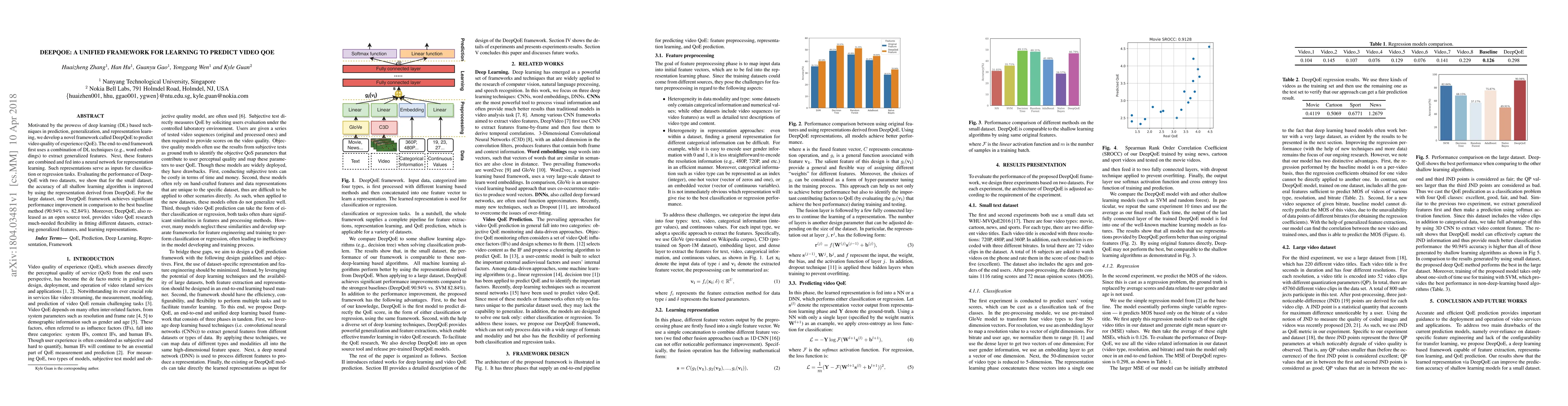 DeepQoE is a novel deep learning framework designed to predict video quality of experience (QoE) using generalized features extracted via deep learning techniques. It significantly outperforms baseline methods on large datasets and enhances shallow learning algorithms on smaller ones, offering flexibility for video QoE research.