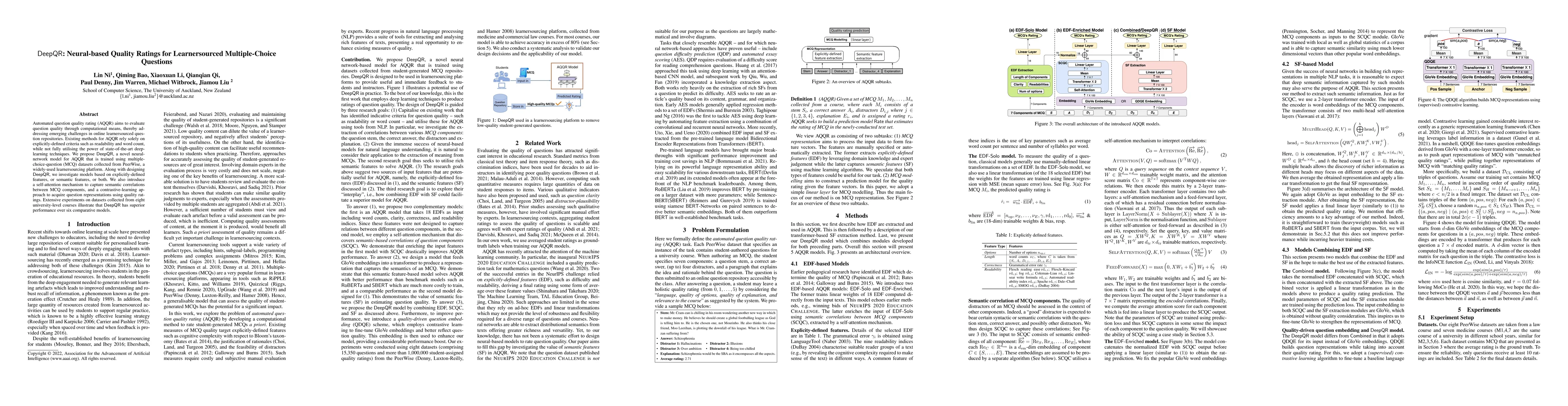 DeepQR, a novel neural network model, outperforms six comparative models in automated question quality rating, improving upon existing methods with its self-attention mechanism and contrastive-learning approach.