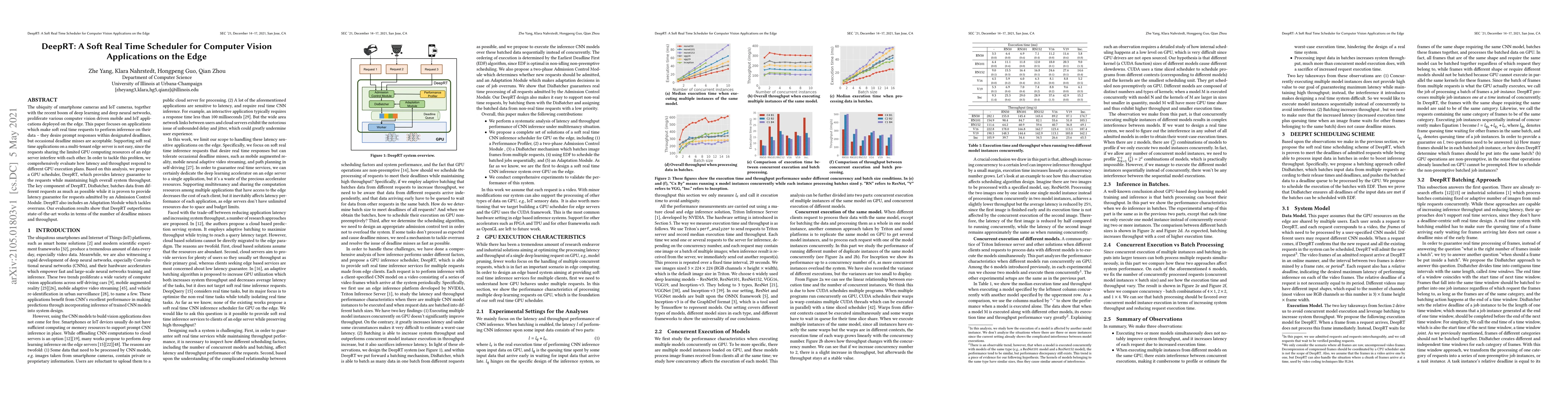 DeepRT is a soft real time scheduler designed to manage GPU resources for computer vision applications on edge devices, ensuring timely responses while maximizing throughput. It employs a DisBatcher to batch requests and an Adaptation Module to handle overruns, outperforming existing methods in deadline compliance and throughput.