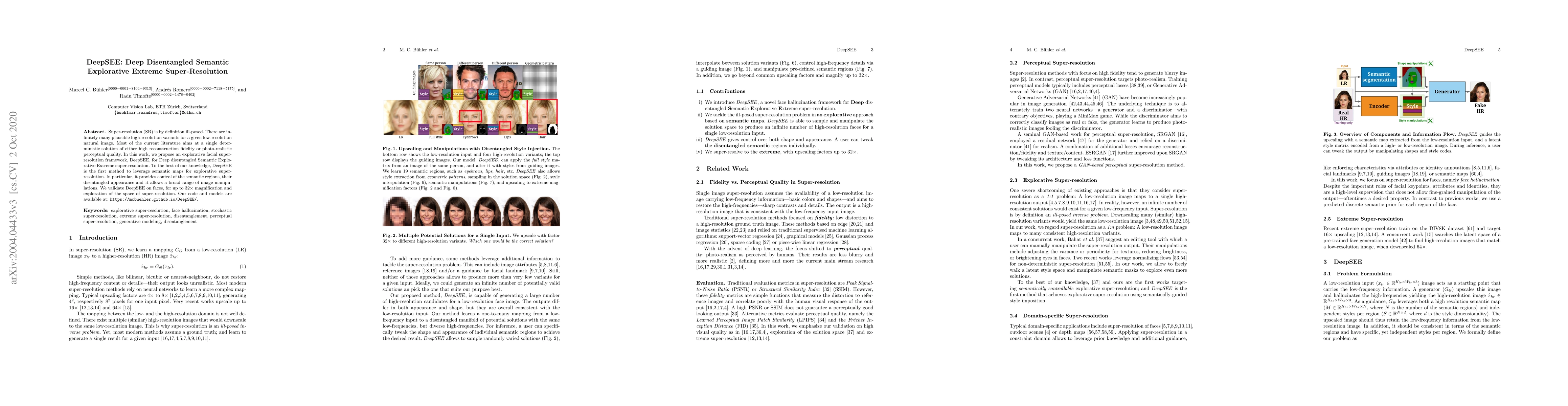 DeepSEE proposes a novel framework for explorative facial super-resolution, leveraging semantic maps to disentangle and manipulate semantic regions for a wide range of high-resolution image variations, validated up to 32x magnification. The method offers control over semantic regions and appearance, enabling diverse image manipulations.