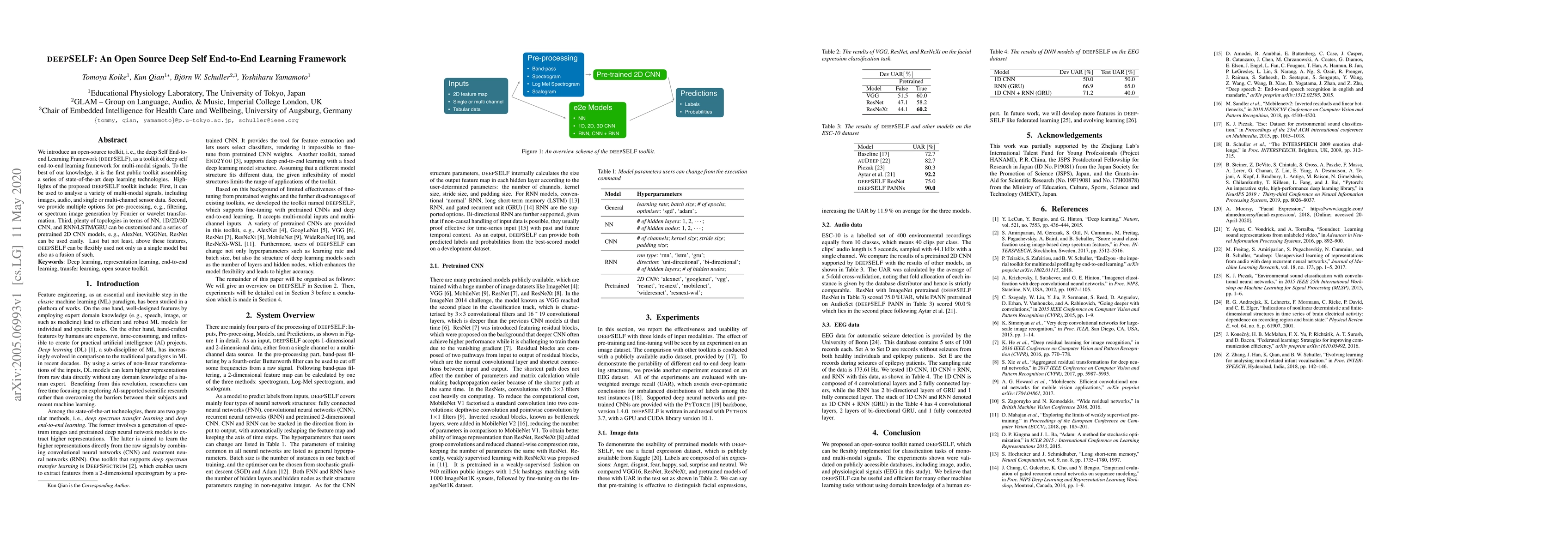 The primary technical contribution of this work is the development of deepSELF, an open-source deep learning framework that supports end-to-end learning for multi-modal signals, combining various pre-trained models and customizable neural network architectures.
