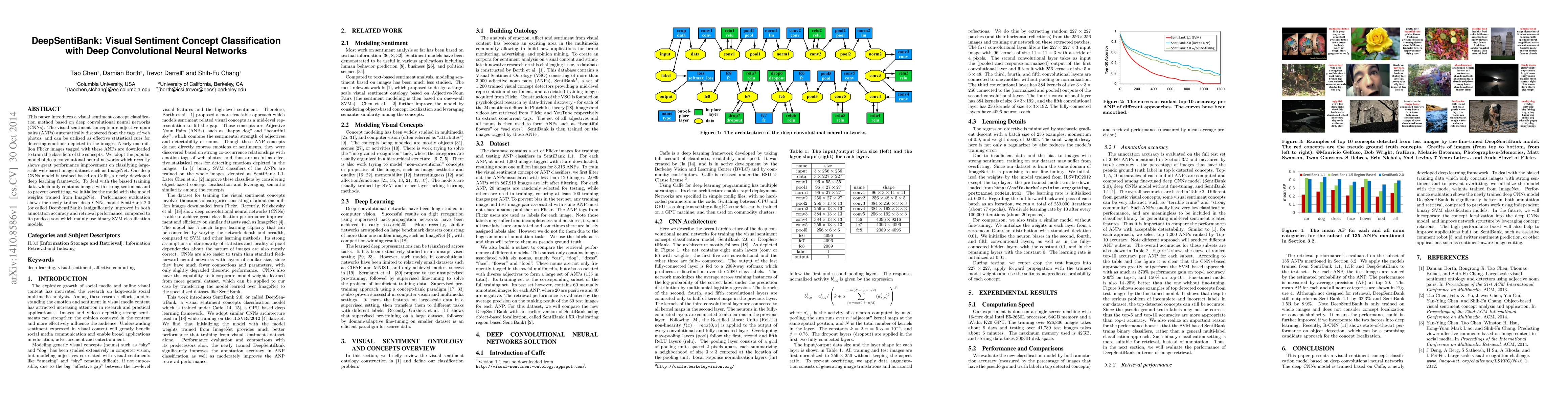 This paper presents DeepSentiBank, a method using deep convolutional neural networks for visual sentiment concept classification, employing nearly one million Flickr images tagged with adjective noun pairs. The deep CNNs model, trained with ImageNet weights, significantly improves annotation accuracy and retrieval performance over previous binary SVM models.