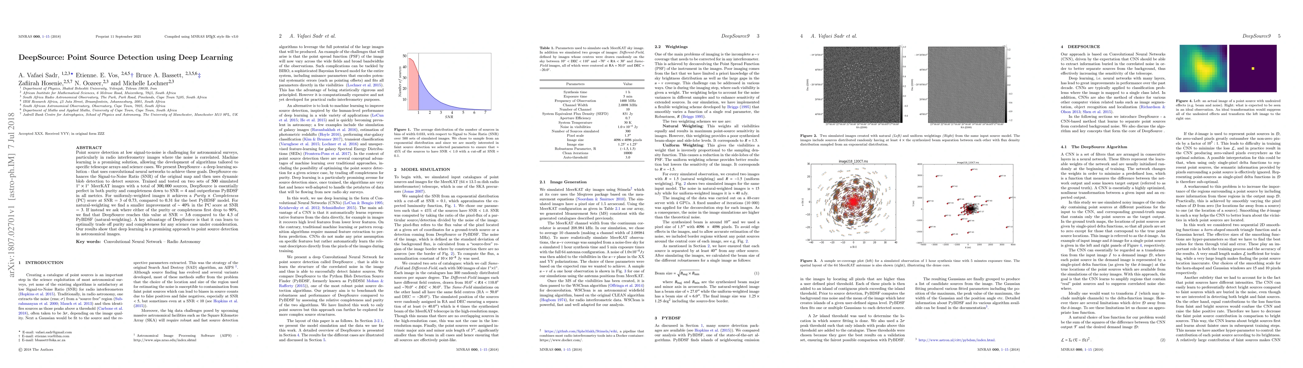 A new deep learning algorithm called DeepSource outperforms existing methods in detecting point sources in low-SNR astronomical images, achieving high purity and completeness scores at low signal-to-noise ratios.