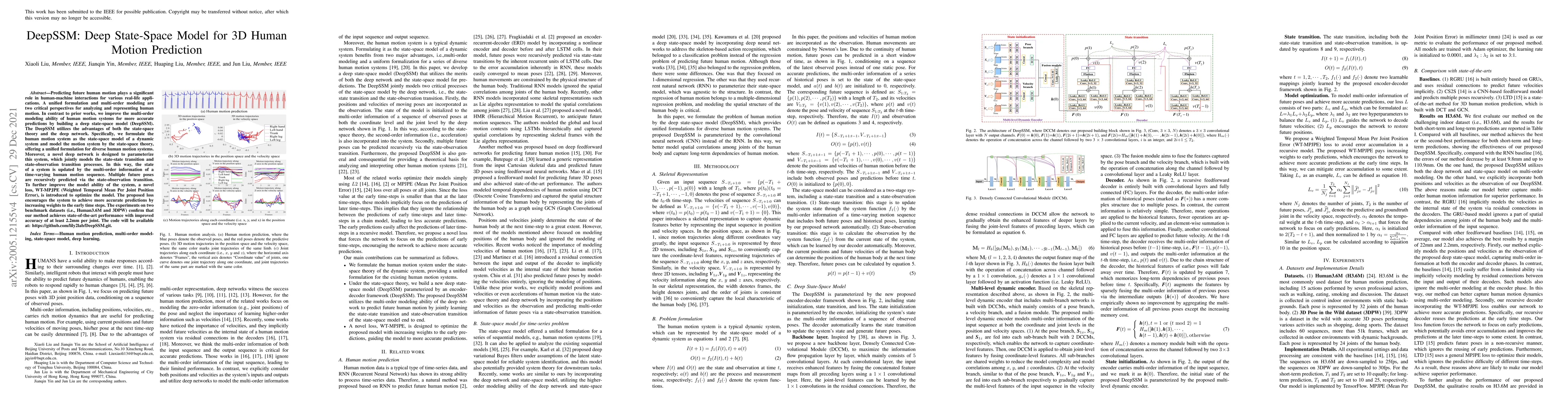 A new deep learning model called DeepSSM predicts future human motion with improved accuracy, achieving state-of-the-art performance on two benchmark datasets.