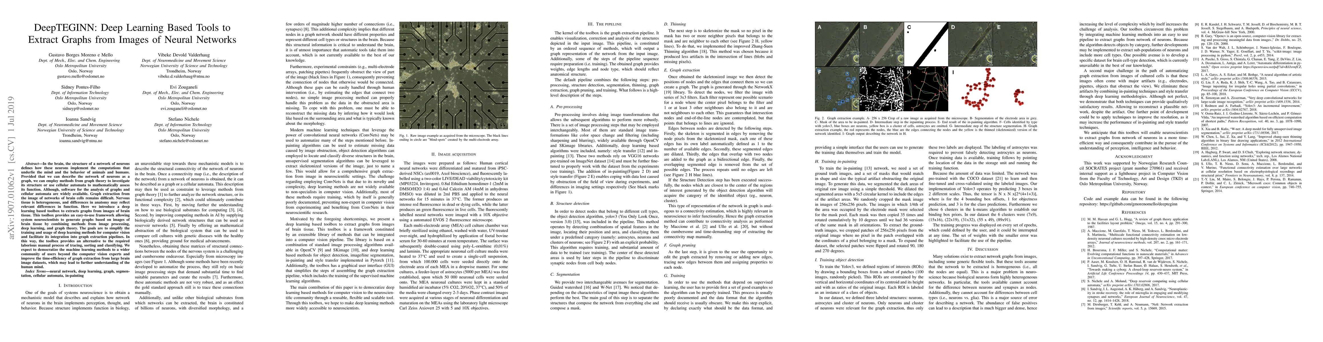 In the brain, the structure of a network of neurons defines how these neurons implement the computations that underlie the mind and the behavior of animals and humans. Provided that we can describe the network of neurons as a graph, we can employ methods from graph theory to investigate its structure or use cellular automata to mathematically assess its function. Although, software for the analysis of graphs and cellular automata are widely available. Graph extraction from the image of networks of brain cells remains difficult. Nervous tissue is heterogeneous, and differences in anatomy may reflect relevant differences in function. Here we introduce a deep learning based toolbox to extracts graphs from images of brain tissue. This toolbox provides an easy-to-use framework allowing system neuroscientists to generate graphs based on images of brain tissue by combining methods from image processing, deep learning, and graph theory. The goals are to simplify the training and usage of deep learning methods for computer vision and facilitate its integration into graph extraction pipelines. In this way, the toolbox provides an alternative to the required laborious manual process of tracing, sorting and classifying. We expect to democratize the machine learning methods to a wider community of users beyond the computer vision experts and improve the time-efficiency of graph extraction from large brain image datasets, which may lead to further understanding of the human mind.
