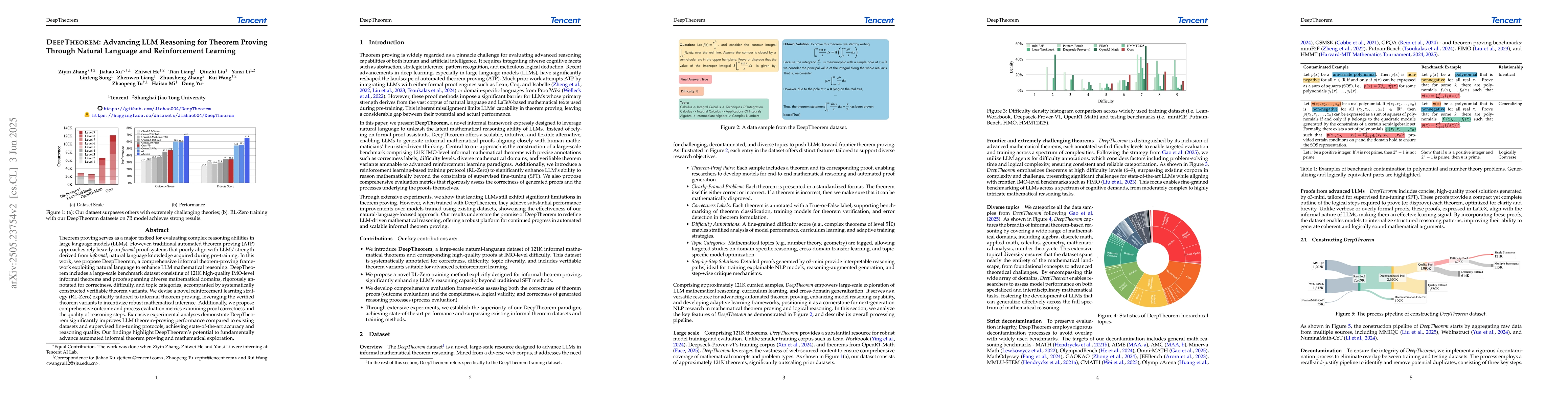 DeepTheorem improves LLM theorem-proving performance using natural language and reinforcement learning, achieving state-of-the-art accuracy and reasoning quality.