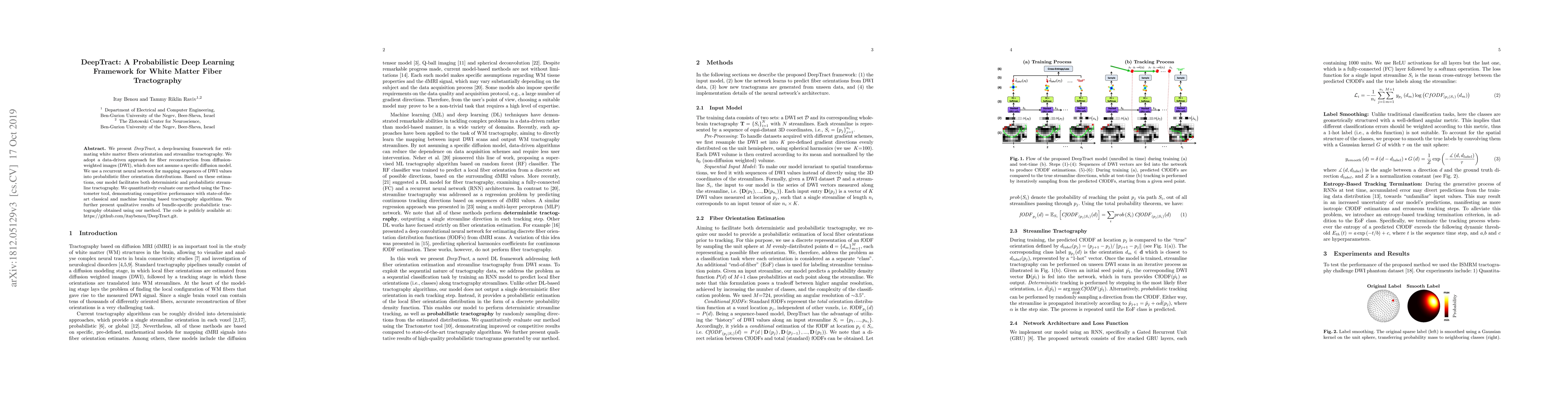 DeepTract is a deep learning framework for estimating white matter fiber orientation and streamline tractography from diffusion weighted images without assuming a specific diffusion model. It uses a recurrent neural network to map DWI sequences into probabilistic fiber orientation distributions, achieving competitive performance compared to state-of-the-art methods.