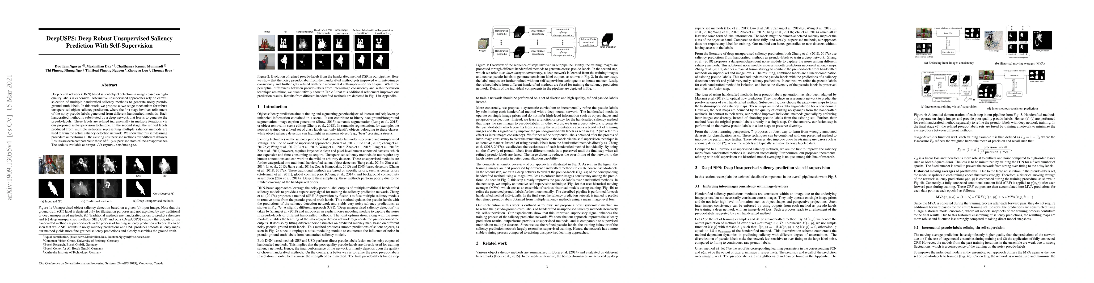 DeepUSPS proposes a self-supervised two-stage method for robust unsupervised salient object detection, refining noisy pseudo-labels generated by multiple deep networks and training a saliency detection network with these refined labels. The approach outperforms existing unsupervised methods and is comparable to fully-supervised state-of-the-art techniques.