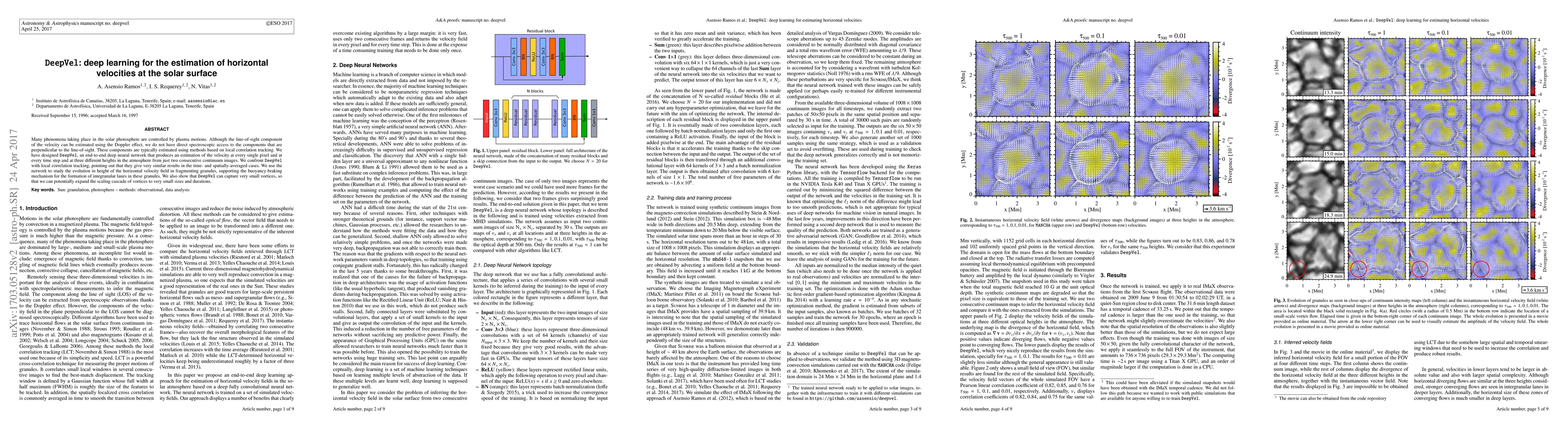 A deep learning model called DeepVel accurately estimates horizontal velocities in solar surface images, revealing details about granule formation and small vortices.