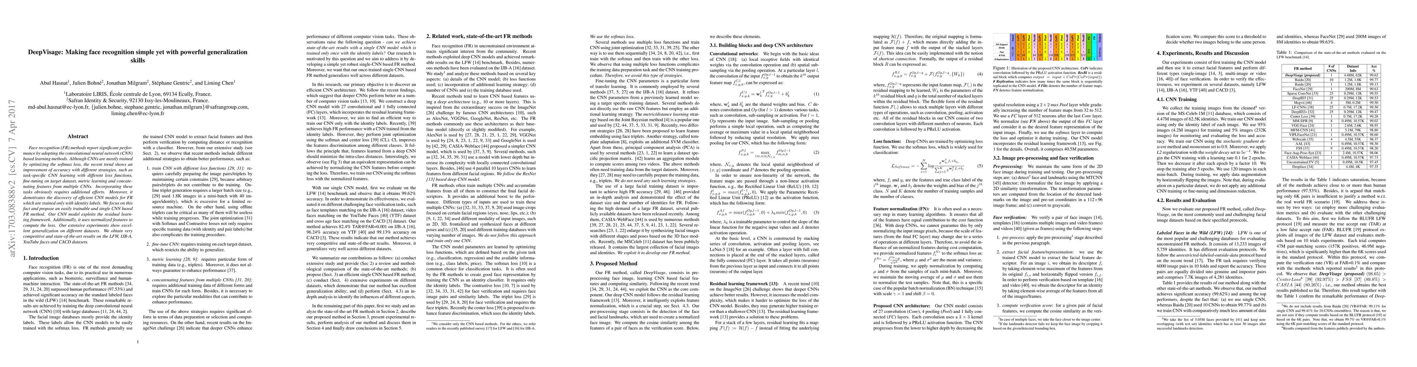 A new face recognition method called DeepVisage uses a single CNN with residual learning framework to achieve excellent generalization on various datasets, outperforming existing methods.