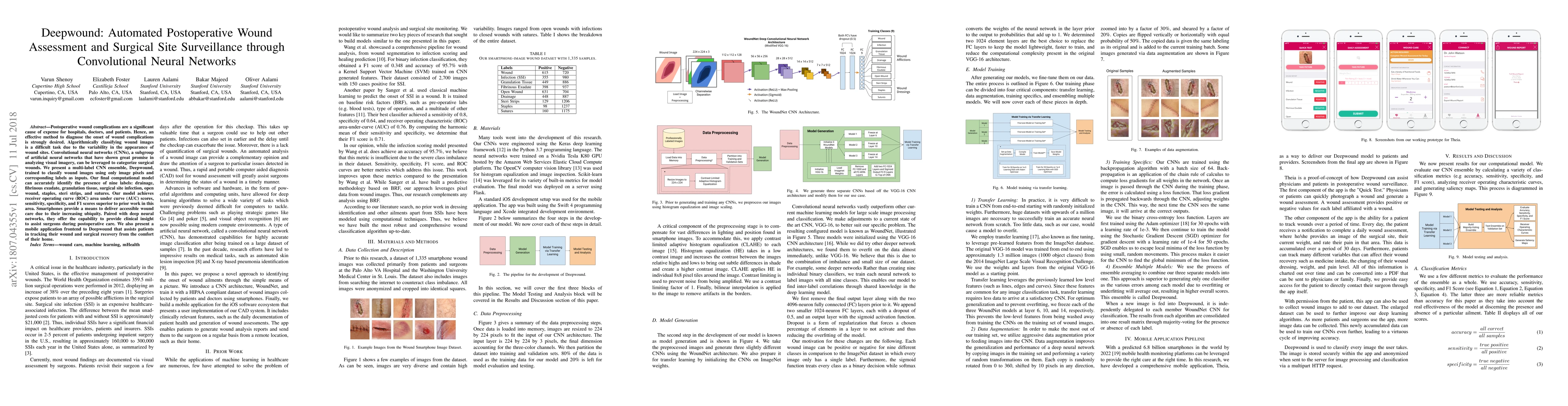 Deepwound employs convolutional neural networks to automate postoperative wound assessment and surgical site surveillance, achieving superior diagnostic accuracy compared to prior methods. The system includes a mobile app to help patients track their recovery, leveraging the ubiquity of smartphones for accessible wound care.