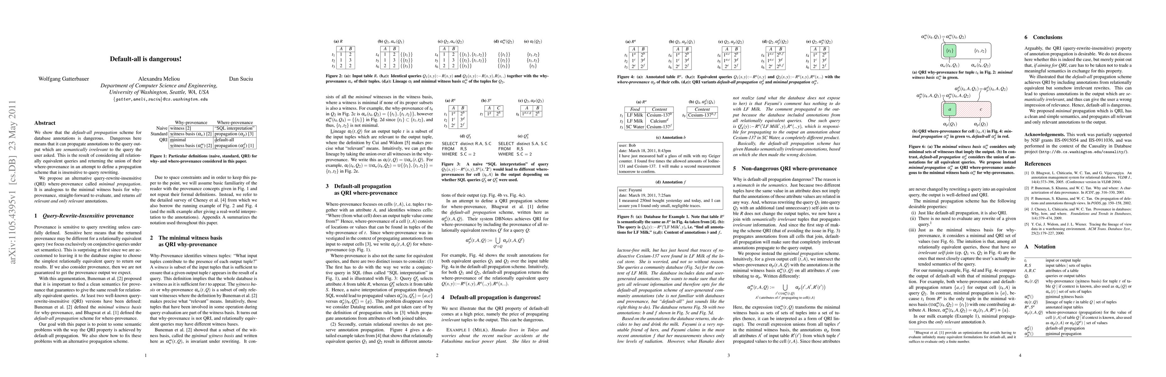 We show that the default-all propagation scheme for database annotations is dangerous. Dangerous here means that it can propagate annotations to the query output which are semantically irrelevant to the query the user asked. This is the result of considering all relationally equivalent queries and returning the union of their where-provenance in an attempt to define a propagation scheme that is insensitive to query rewriting. We propose an alternative query-rewrite-insensitive (QRI) where-provenance called minimum propagation. It is analogous to the minimum witness basis for why-provenance, straight-forward to evaluate, and returns all relevant and only relevant annotations.