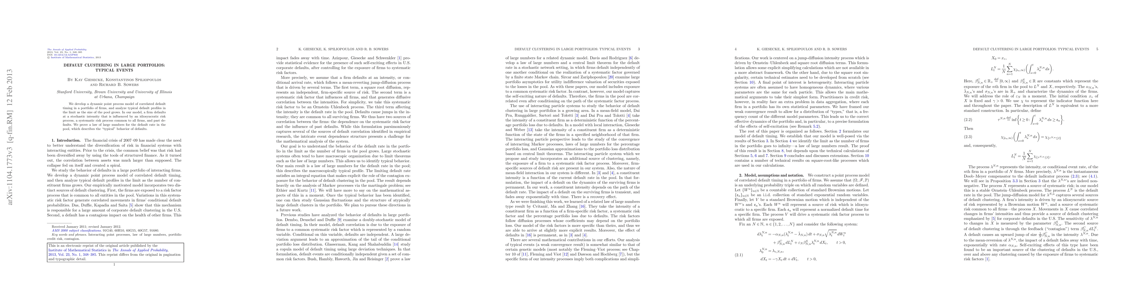 We develop a dynamic point process model of correlated default timing in a portfolio of firms, and analyze typical default profiles in the limit as the size of the pool grows. In our model, a firm defaults at a stochastic intensity that is influenced by an idiosyncratic risk process, a systematic risk process common to all firms, and past defaults. We prove a law of large numbers for the default rate in the pool, which describes the "typical" behavior of defaults.