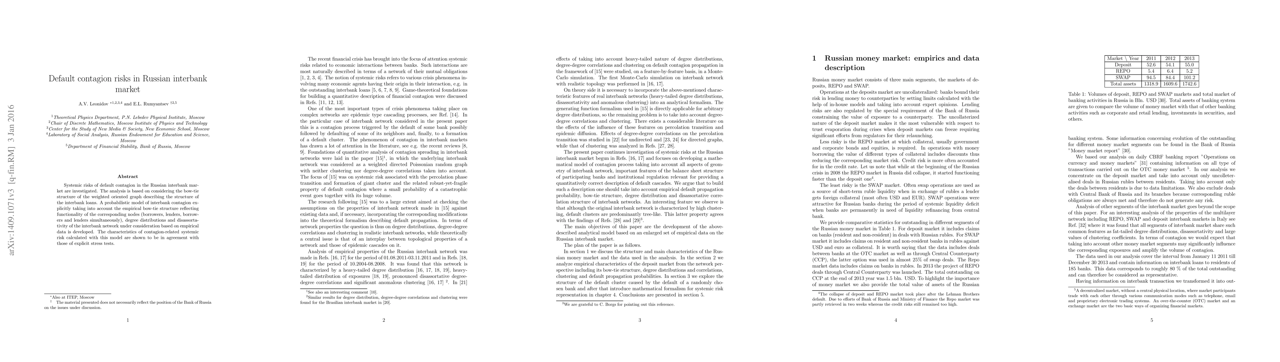 This paper investigates systemic default contagion risks in the Russian interbank market using a probabilistic model that considers the empirical bow-tie structure of interbank loans. The model's results align with stress tests, highlighting the network's vulnerability and the importance of node functionality.