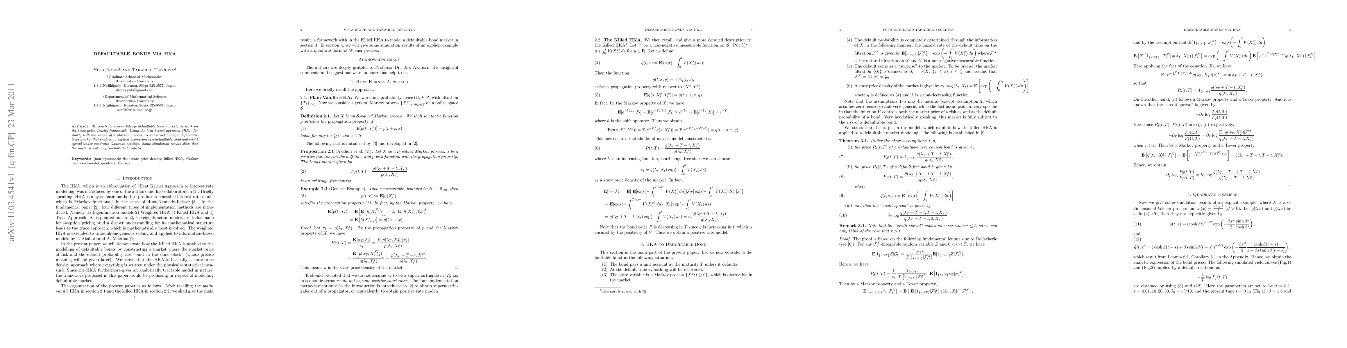 This paper constructs a no-arbitrage defaultable bond market using the heat kernel approach (HKA) within the state price density framework, providing explicit expressions for defaultable bonds and credit spreads under quadratic Gaussian settings. Simulation results indicate the model's tractability and realism.