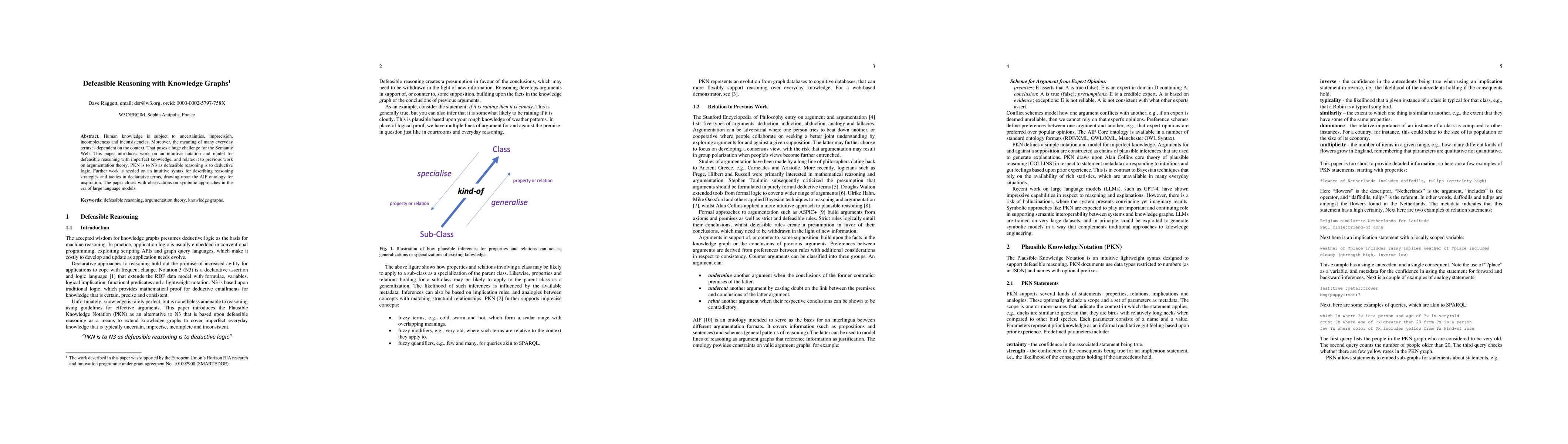 Human knowledge is subject to uncertainties, imprecision, incompleteness and inconsistencies. Moreover, the meaning of many everyday terms is dependent on the context. That poses a huge challenge for the Semantic Web. This paper introduces work on an intuitive notation and model for defeasible reasoning with imperfect knowledge, and relates it to previous work on argumentation theory. PKN is to N3 as defeasible reasoning is to deductive logic. Further work is needed on an intuitive syntax for describing reasoning strategies and tactics in declarative terms, drawing upon the AIF ontology for inspiration. The paper closes with observations on symbolic approaches in the era of large language models.