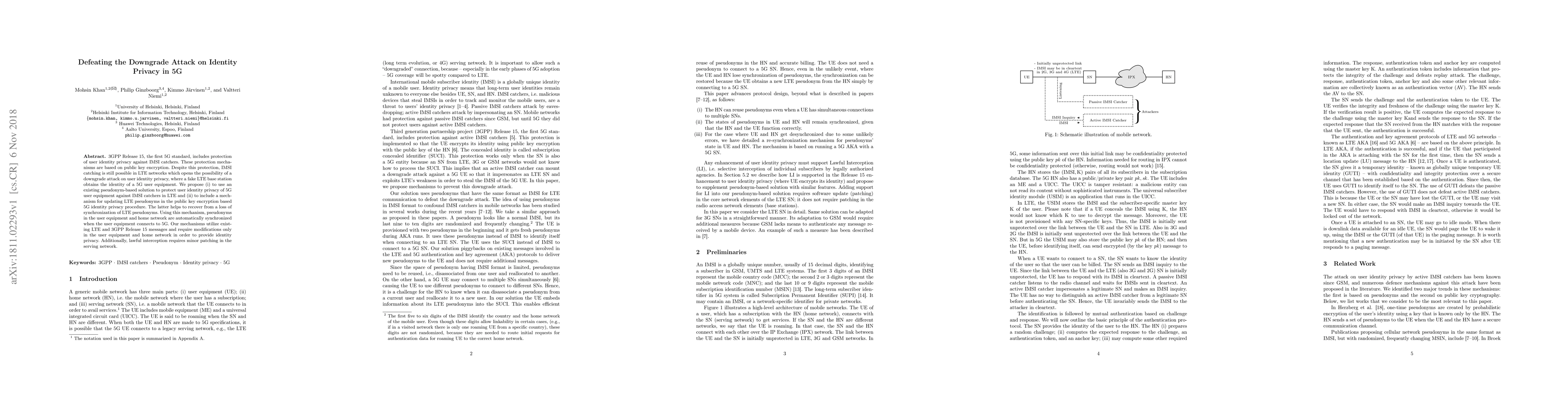 This paper proposes mechanisms to enhance identity privacy for 5G users against IMSI catchers by utilizing a pseudonym-based solution and synchronizing LTE pseudonyms within the 5G privacy procedure, requiring minimal modifications in user equipment and home networks.